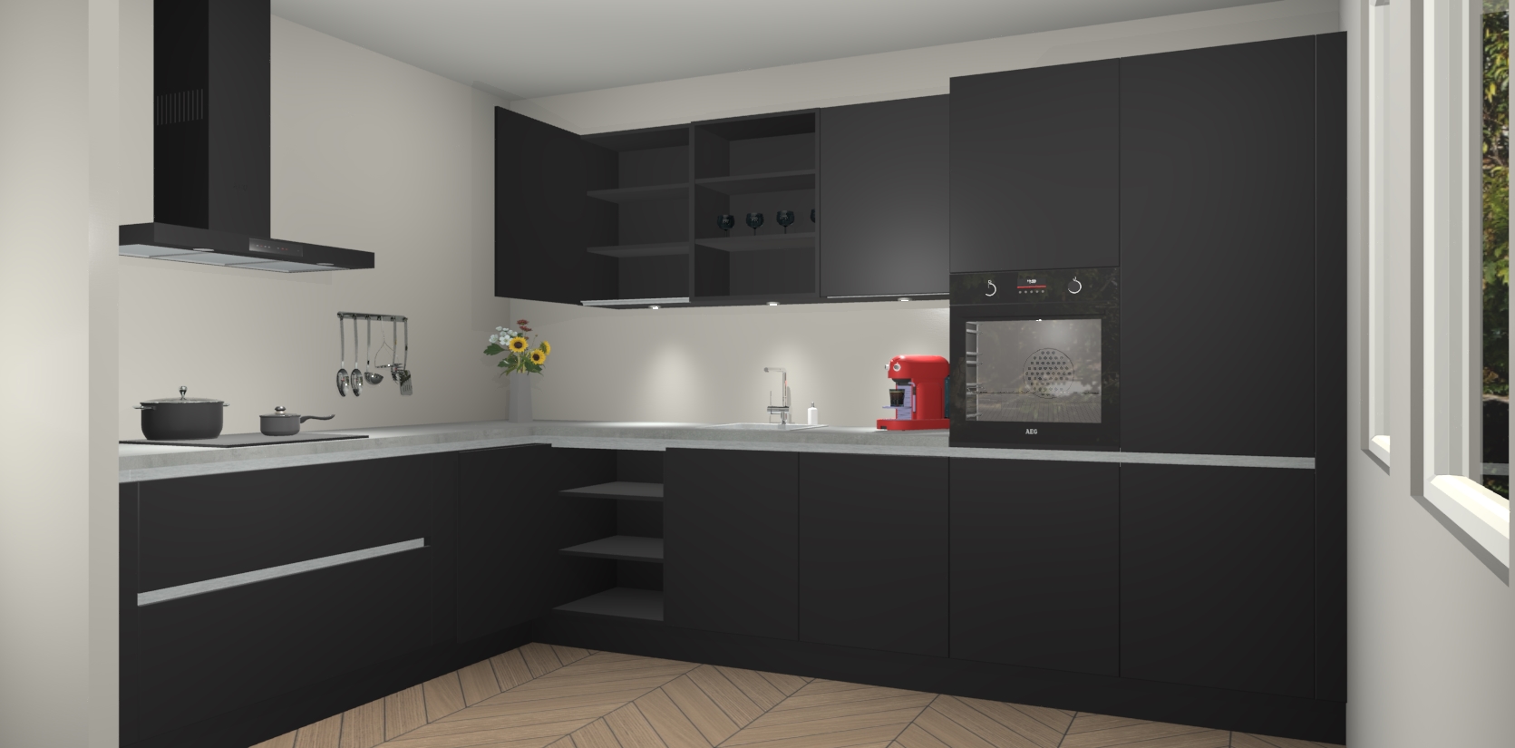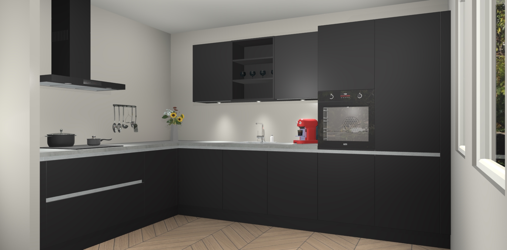 Dit is de perfecte keuken voor wie op zoek is naar een luxueuze stijl zonder zijn portemonnee te legen! Het chique ontwerp van Zwarte greeploze keuken Gotenburg voegt dat vleugje verfijning toe aan elk huis.