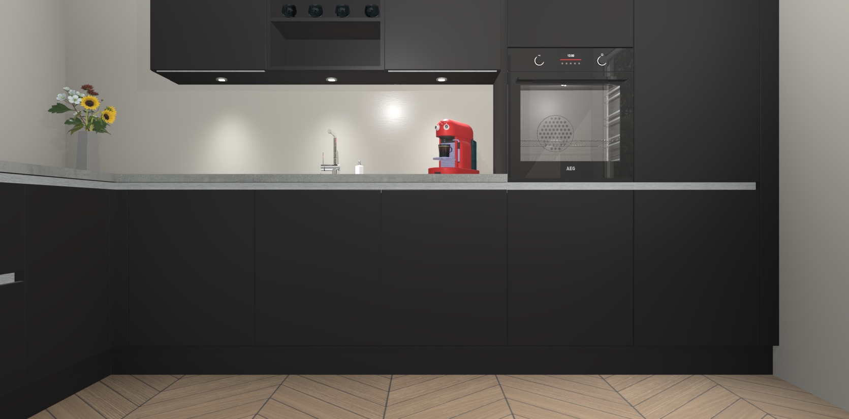 Inclusief plinten, stelpoten en werkblad