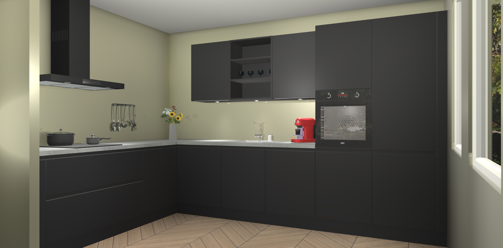 Dit is de perfecte keuken voor wie op zoek is naar een luxueuze stijl zonder zijn portemonnee te legen! Het chique ontwerp van Zwarte greeploze keuken Gotenburg voegt dat vleugje verfijning toe aan elk huis.