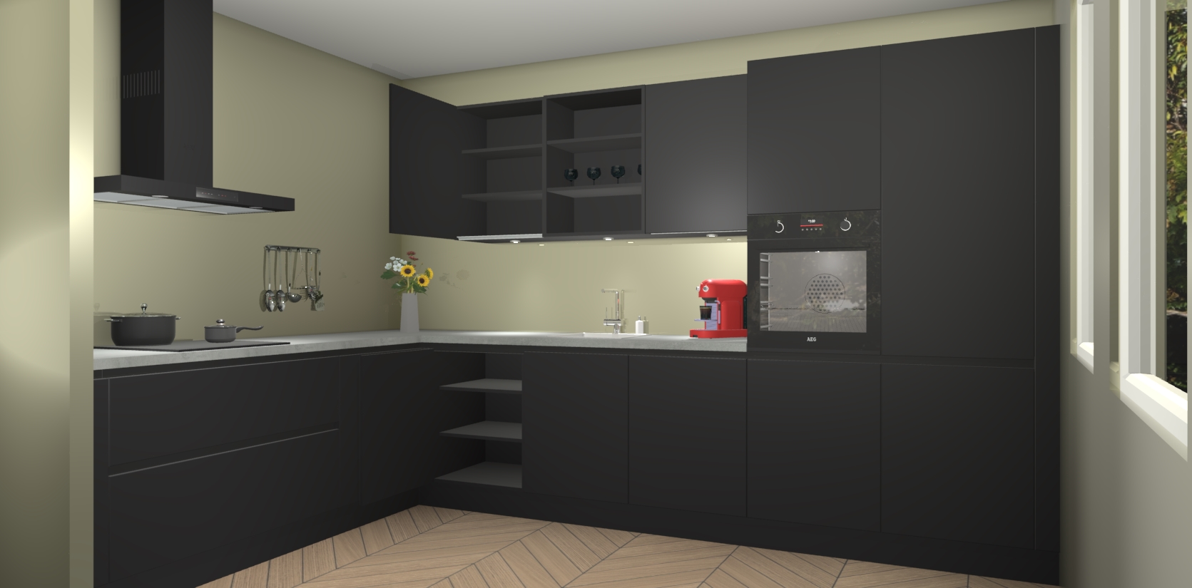 Welkom bij de Zwarte greeploze Keuken Gotenburg - waar luxe en chic wonen nog nooit zo betaalbaar is geweest! Deze strakke hoekkeuken is perfect voor elk huishouden en biedt een indrukwekkende hoeveelheid opbergruimte voor al uw behoeften. Bovendien zijn de kasten in de fabriek voor gemonteerd, zodat u binnen mum van tijd kunt genieten van uw langverwachte keukendromen.