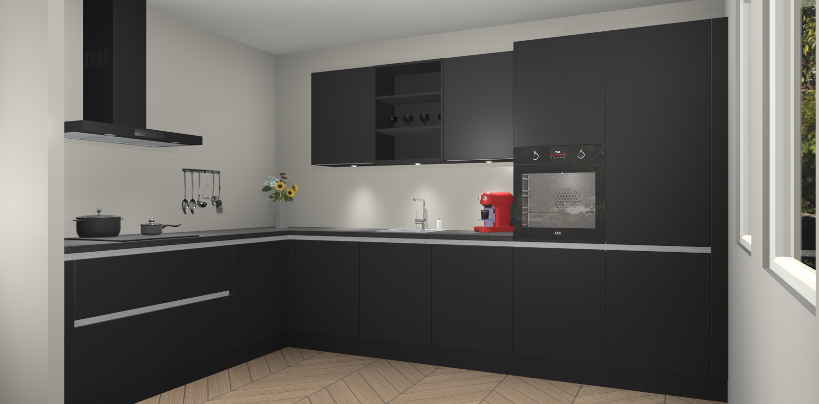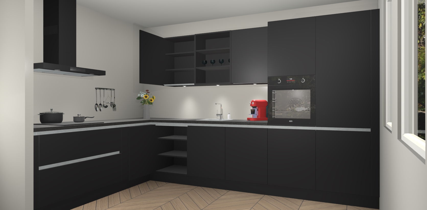 Inclusief plinten, stelpoten en werkblad
