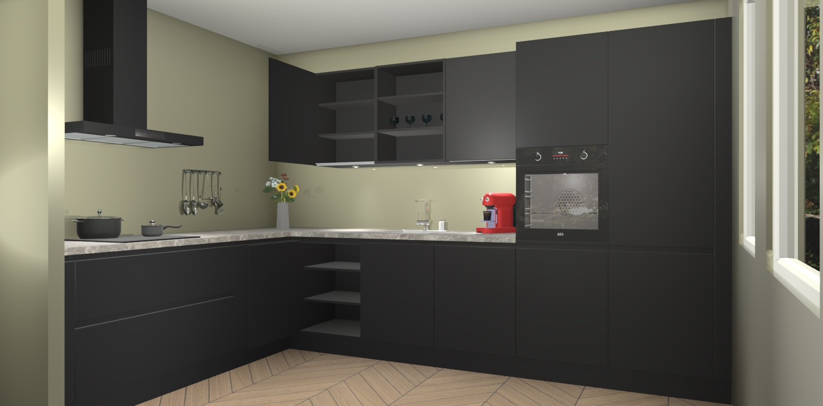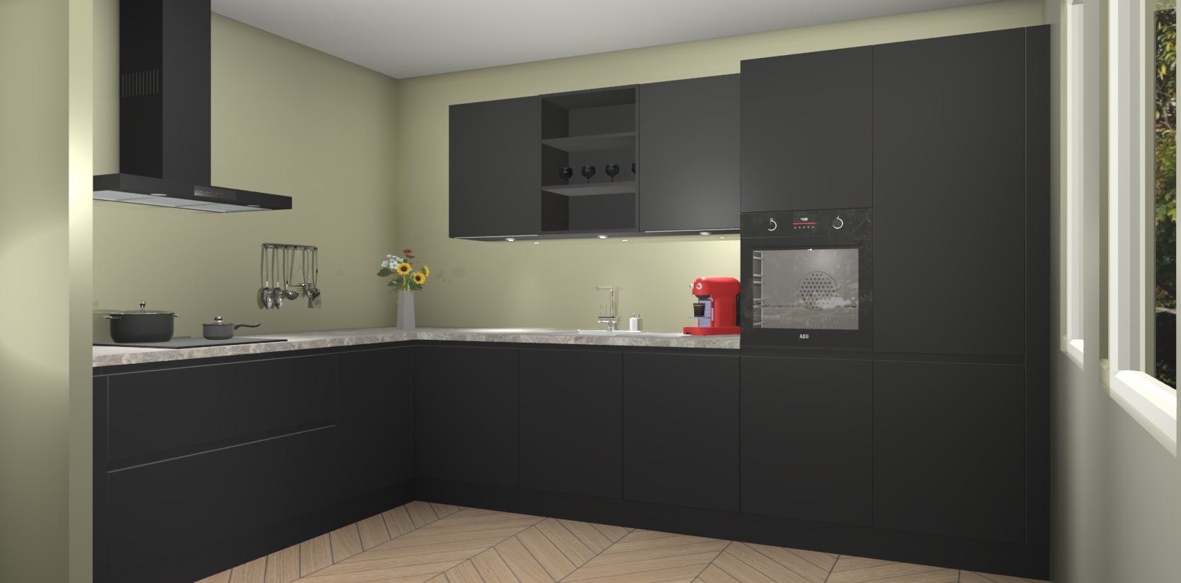 Dit is de perfecte keuken voor wie op zoek is naar een luxueuze stijl zonder zijn portemonnee te legen! Het chique ontwerp van Zwarte greeploze keuken Gotenburg voegt dat vleugje verfijning toe aan elk huis.