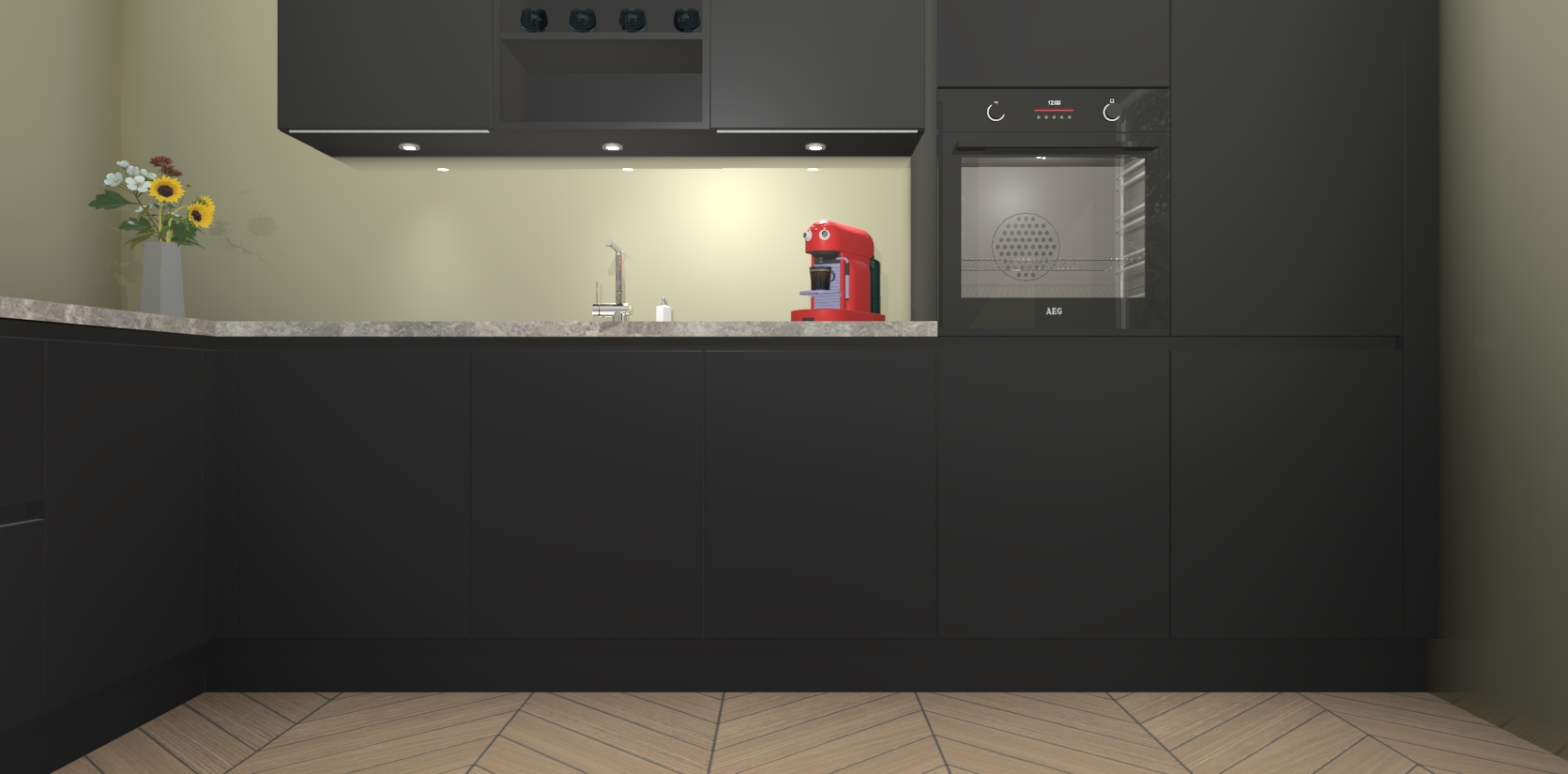 Inclusief plinten, stelpoten en werkblad