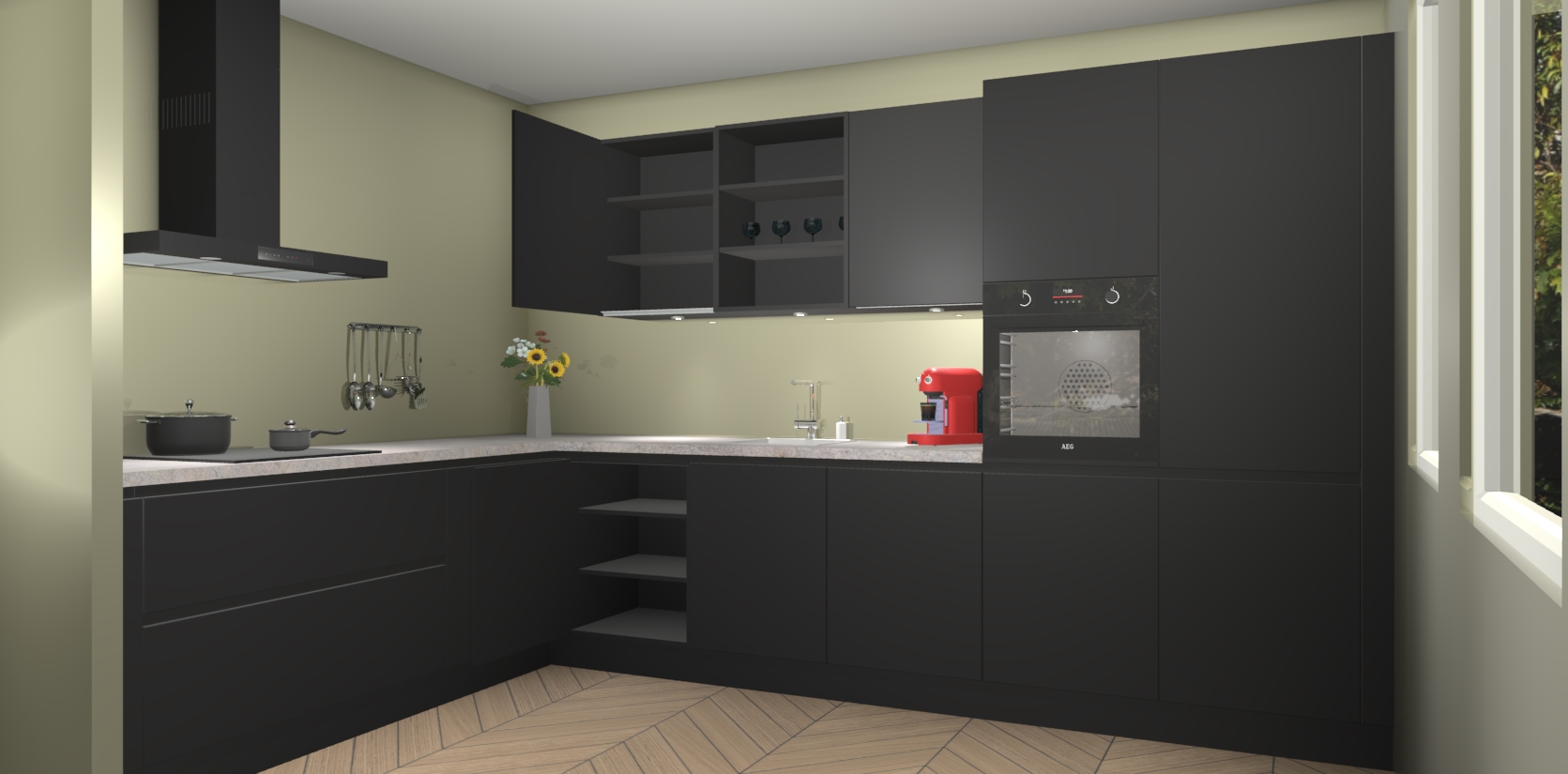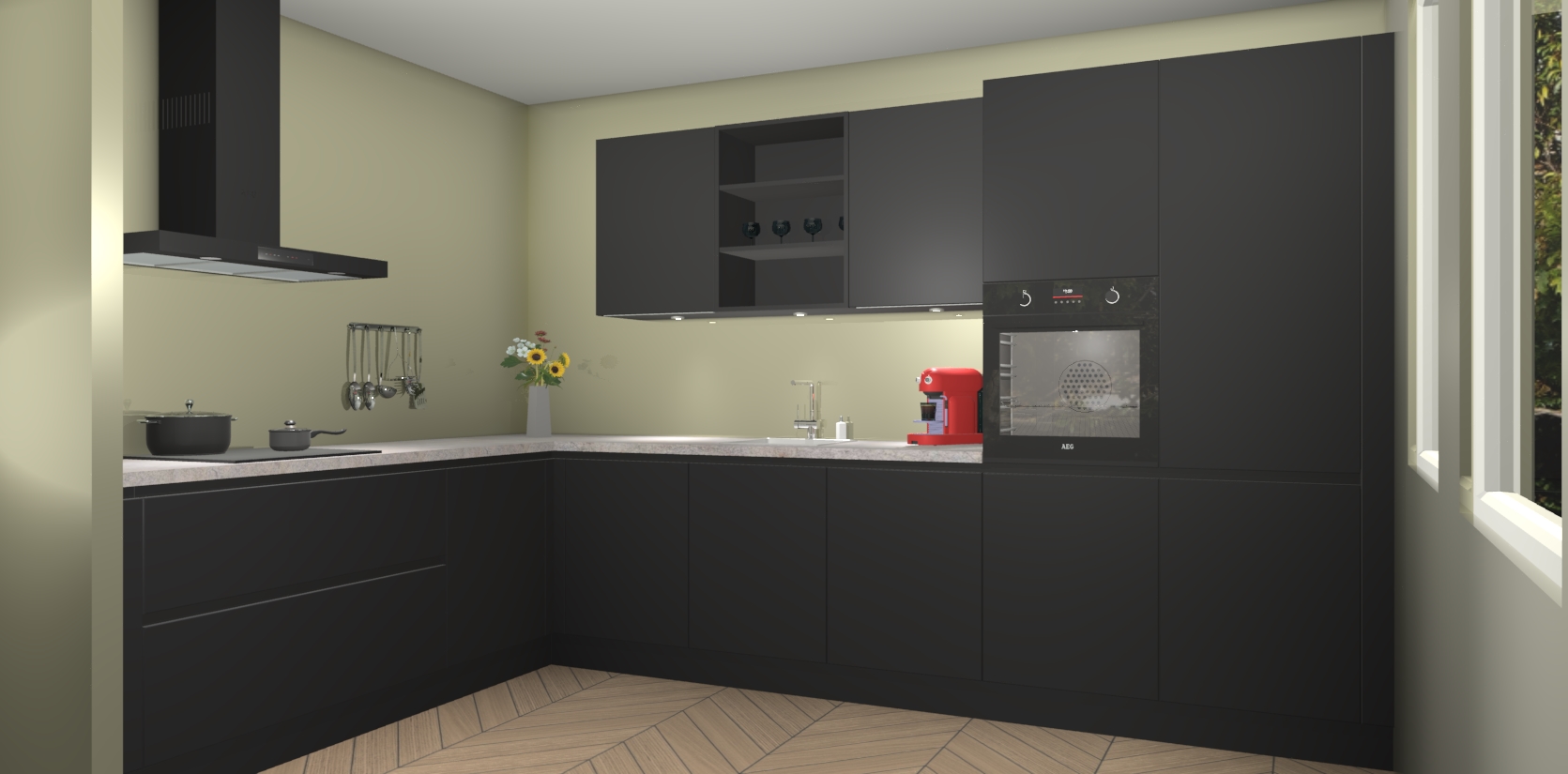 Dit is de perfecte keuken voor wie op zoek is naar een luxueuze stijl zonder zijn portemonnee te legen! Het chique ontwerp van Zwarte greeploze keuken Gotenburg voegt dat vleugje verfijning toe aan elk huis.