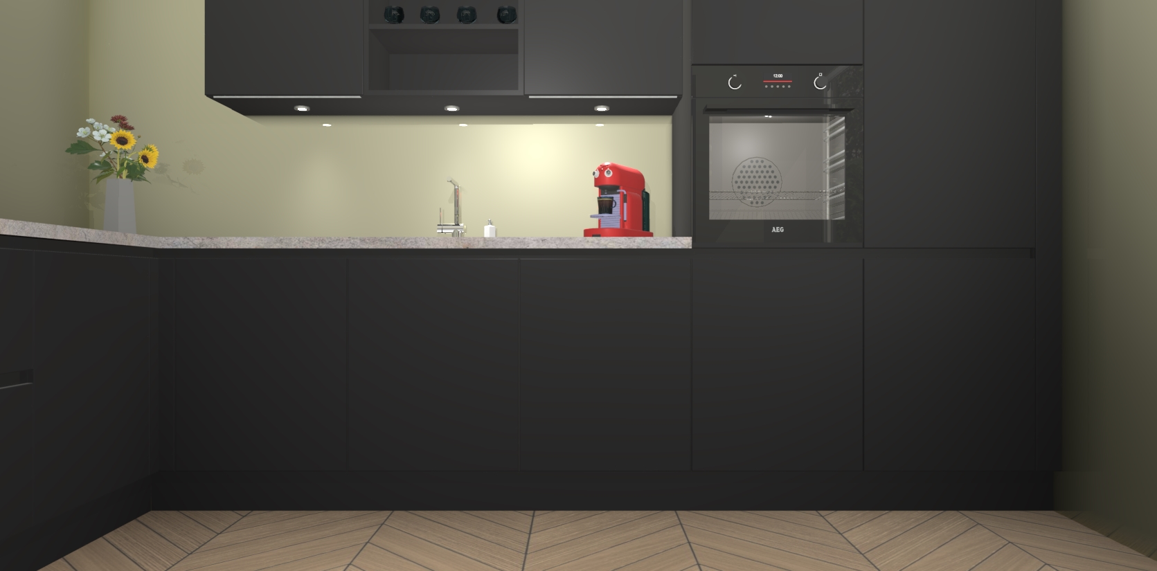 Inclusief plinten, stelpoten en werkblad