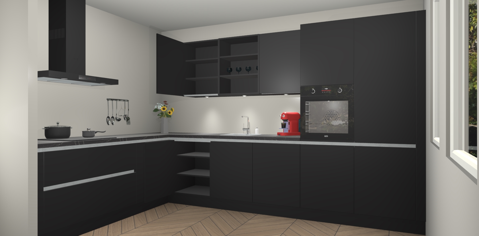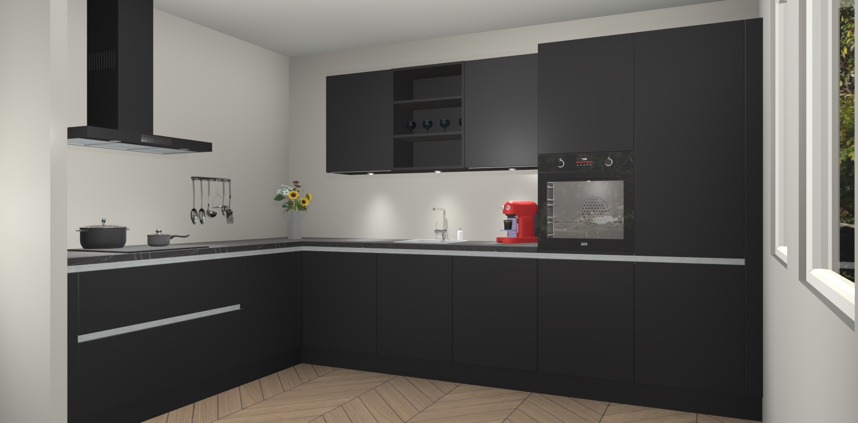Dit is de perfecte keuken voor wie op zoek is naar een luxueuze stijl zonder zijn portemonnee te legen! Het chique ontwerp van Zwarte greeploze keuken Gotenburg voegt dat vleugje verfijning toe aan elk huis.