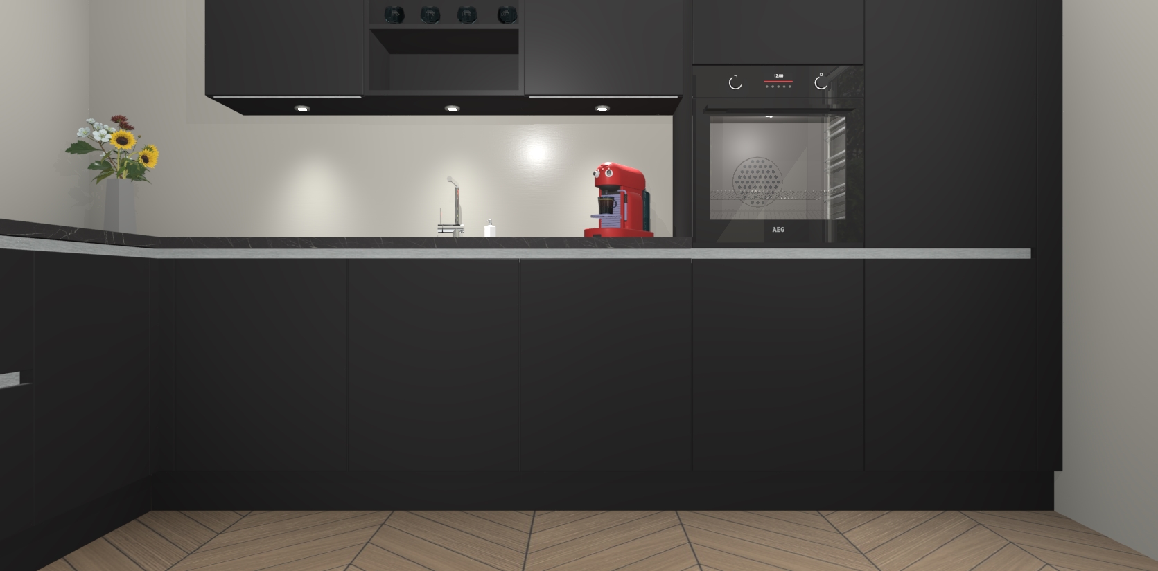 Inclusief plinten, stelpoten en werkblad