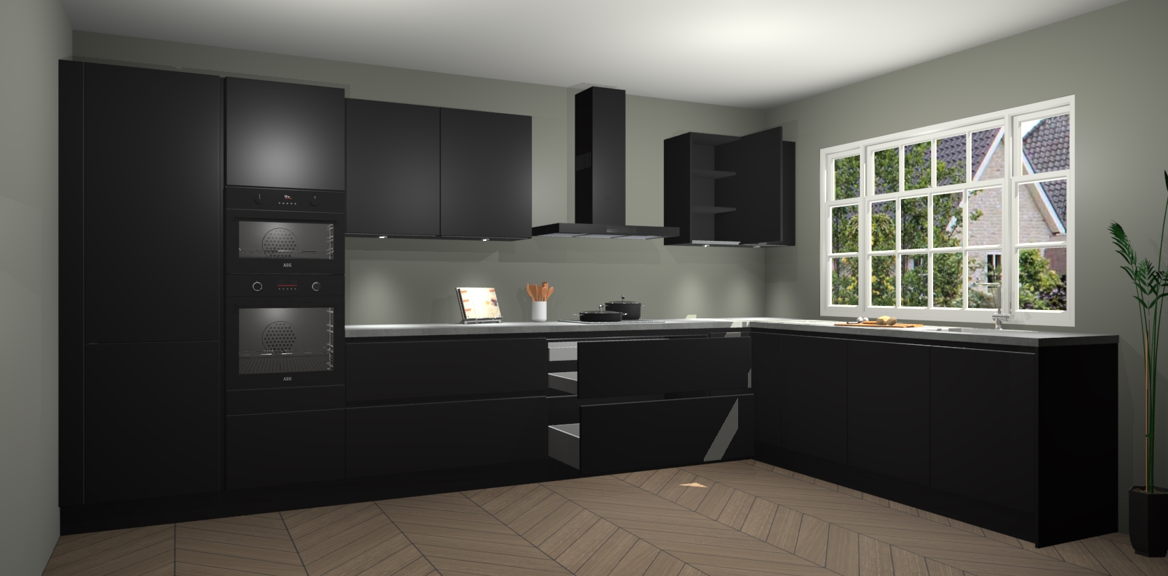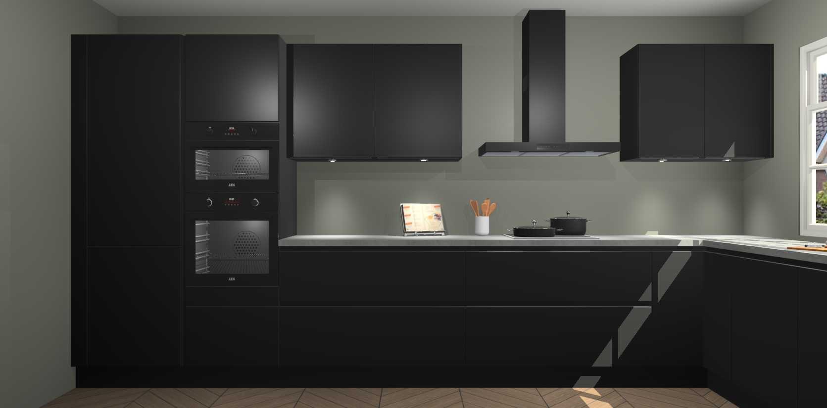Heeft u nog apparatuur nodig? Geen probleem: de zwarte greeploze keuken Graz bevat vijf ingebouwde apparaten - een oven, inductiekookplaat, afzuigkap, vaatwasser en koelkast - die gemakkelijk kunnen worden bijgewerkt naar AEG na bestelling. En als dat nog niet genoeg is; onze kasten worden pre-geassembleerd geleverd en zijn verkrijgbaar tegen een vastgeroeste lage prijs! U hoeft nooit meer te zoeken naar goede kwaliteit en service want onze producten hebben echt Duitse kwaliteit.
