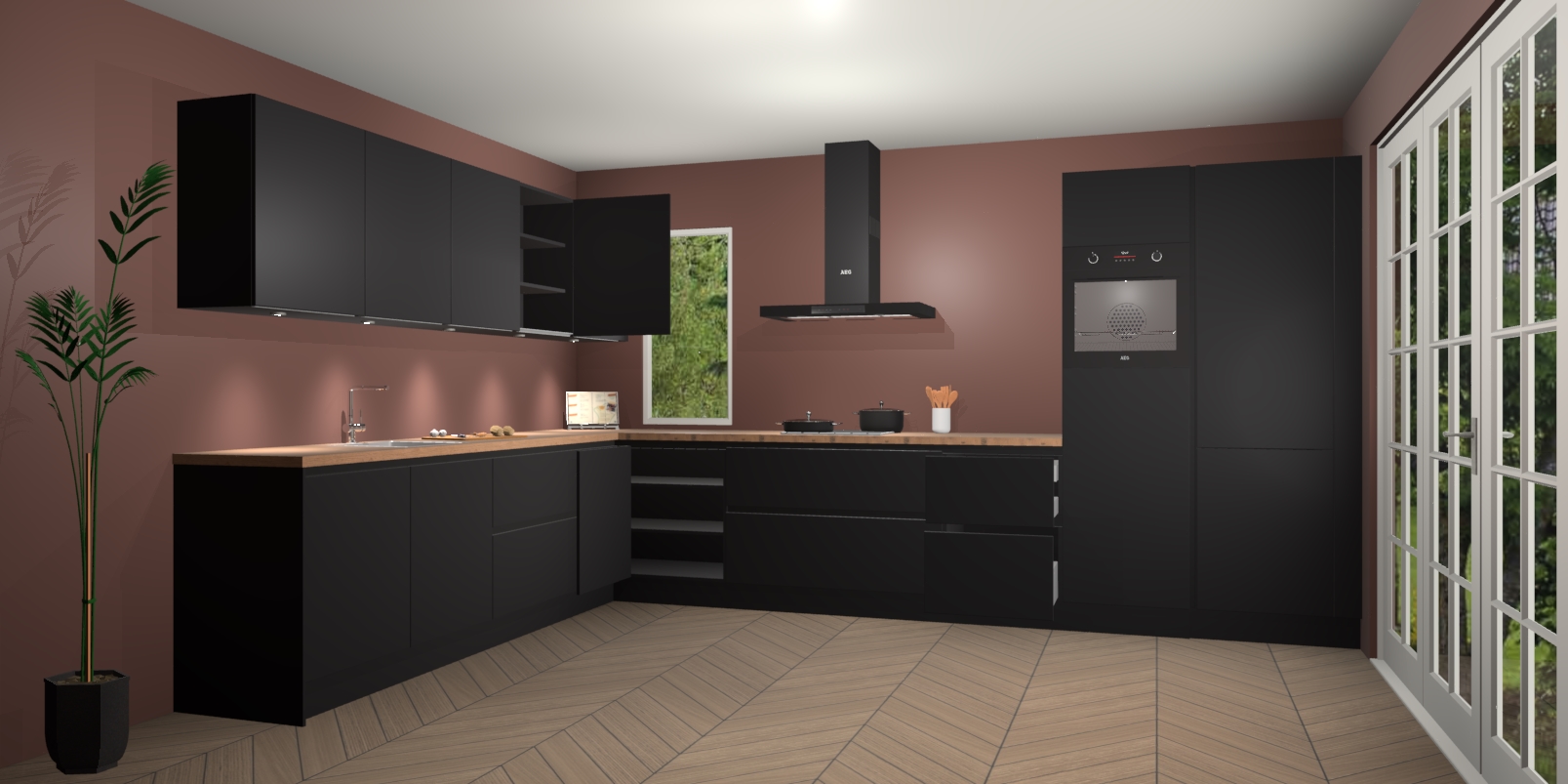 Heeft u nog apparatuur nodig? Geen probleem: de Zwarte greeploze keuken Harare bevat vijf ingebouwde apparaten - een oven, inductiekookplaat, afzuigkap, vaatwasser en koelkast - die gemakkelijk kunnen worden bijgewerkt naar AEG na bestelling. En als dat nog niet genoeg is; onze kasten worden pre-geassembleerd geleverd en zijn verkrijgbaar tegen een vastgeroeste lage prijs! U hoeft nooit meer te zoeken naar goede kwaliteit en service want onze producten hebben echt Duitse kwaliteit.
