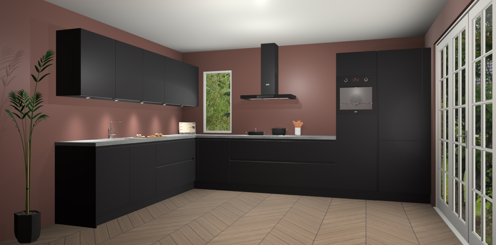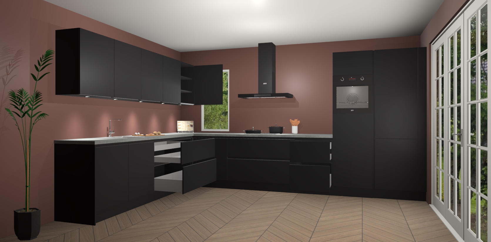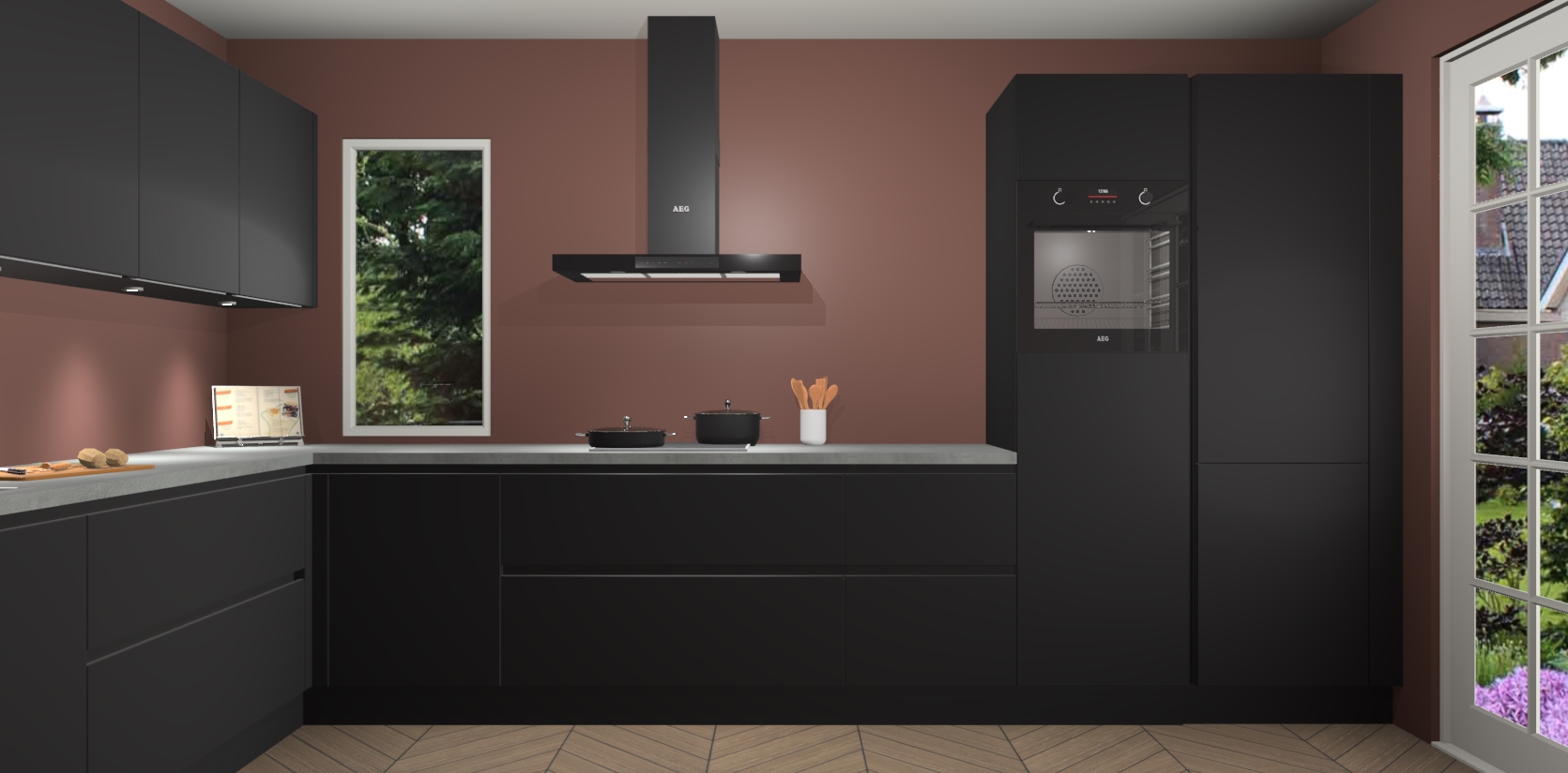 Heeft u nog apparatuur nodig? Geen probleem: de Zwarte greeploze keuken Harare bevat vijf ingebouwde apparaten - een oven, inductiekookplaat, afzuigkap, vaatwasser en koelkast - die gemakkelijk kunnen worden bijgewerkt naar AEG na bestelling. En als dat nog niet genoeg is; onze kasten worden pre-geassembleerd geleverd en zijn verkrijgbaar tegen een vastgeroeste lage prijs! U hoeft nooit meer te zoeken naar goede kwaliteit en service want onze producten hebben echt Duitse kwaliteit.