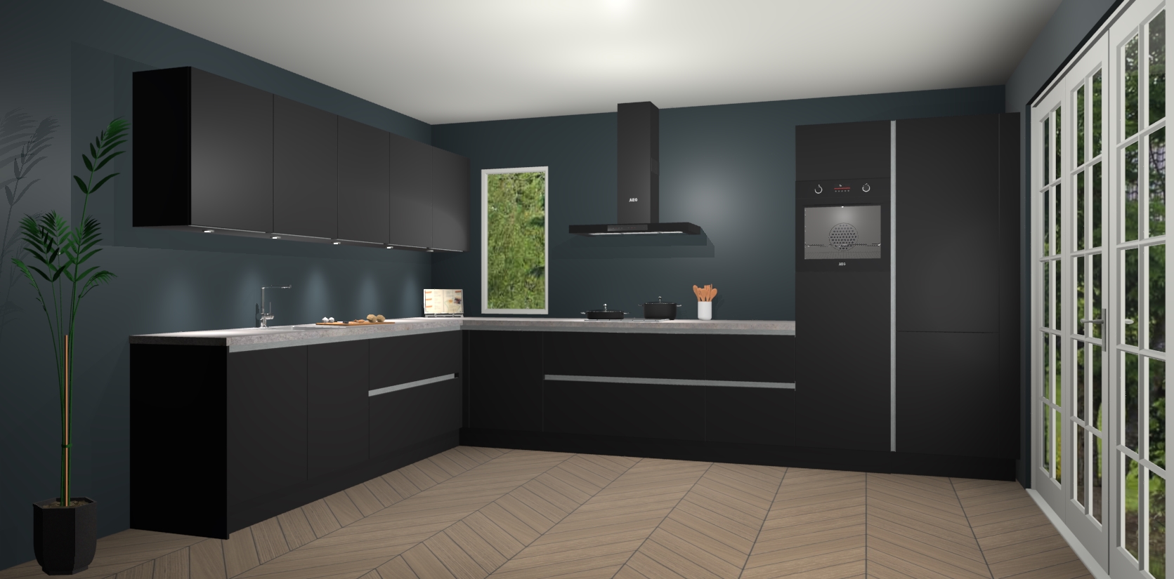 Heeft u nog apparatuur nodig? Geen probleem: de Zwarte greeploze keuken Harare bevat vijf ingebouwde apparaten - een oven, inductiekookplaat, afzuigkap, vaatwasser en koelkast - die gemakkelijk kunnen worden bijgewerkt naar AEG na bestelling. En als dat nog niet genoeg is; onze kasten worden pre-geassembleerd geleverd en zijn verkrijgbaar tegen een vastgeroeste lage prijs! U hoeft nooit meer te zoeken naar goede kwaliteit en service want onze producten hebben echt Duitse kwaliteit.