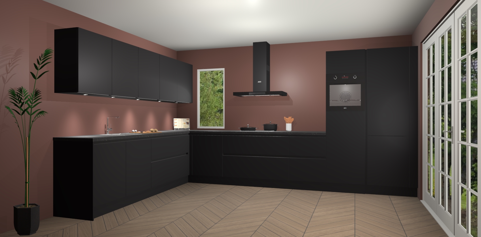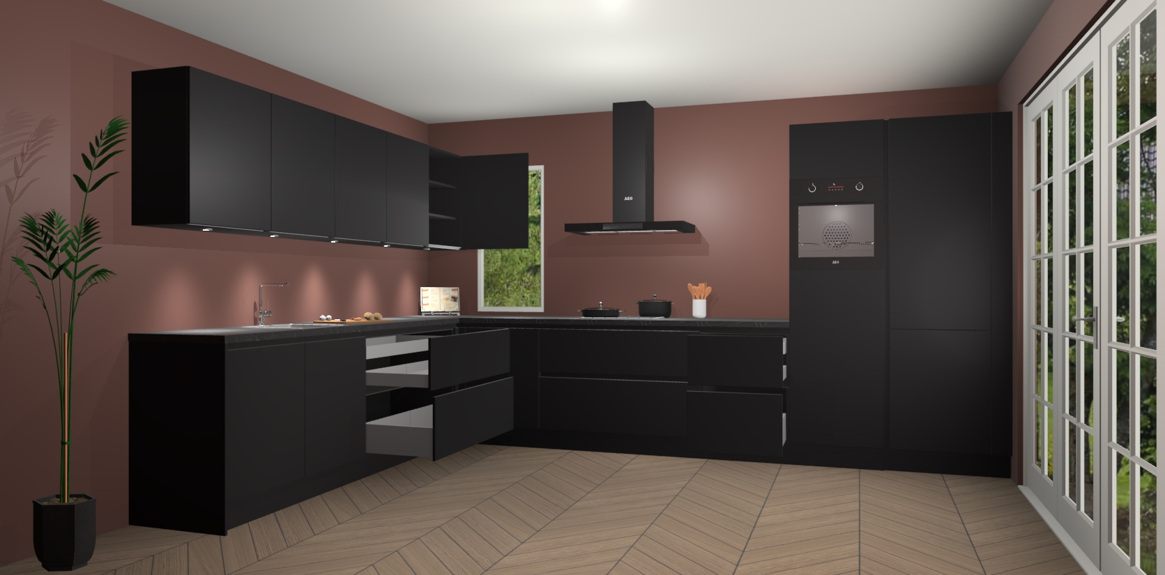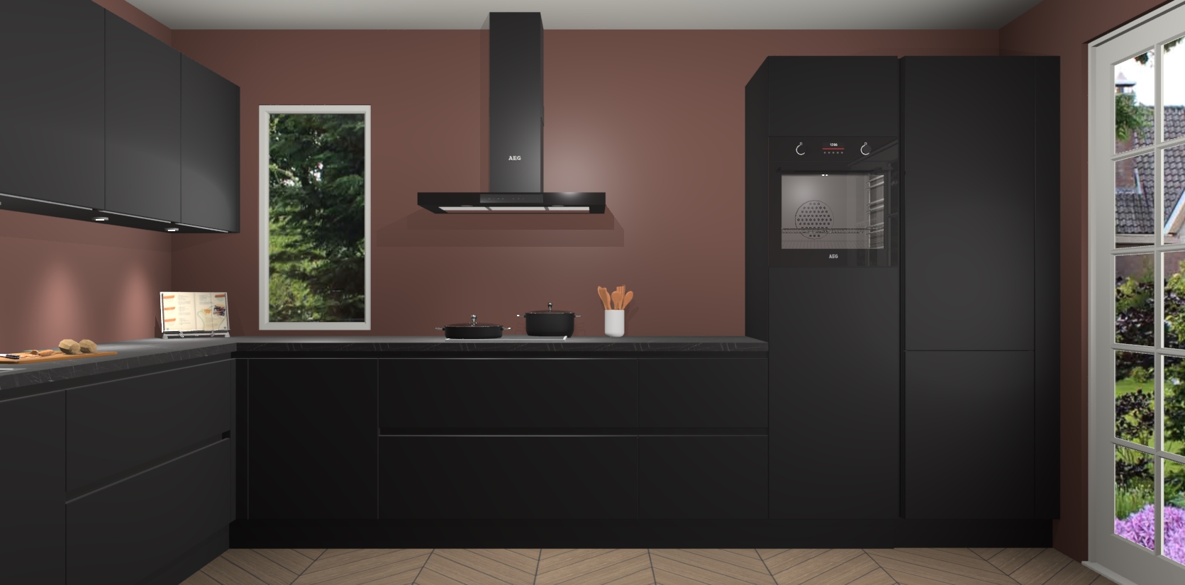Heeft u nog apparatuur nodig? Geen probleem: de Zwarte greeploze keuken Harare bevat vijf ingebouwde apparaten - een oven, inductiekookplaat, afzuigkap, vaatwasser en koelkast - die gemakkelijk kunnen worden bijgewerkt naar AEG na bestelling. En als dat nog niet genoeg is; onze kasten worden pre-geassembleerd geleverd en zijn verkrijgbaar tegen een vastgeroeste lage prijs! U hoeft nooit meer te zoeken naar goede kwaliteit en service want onze producten hebben echt Duitse kwaliteit.