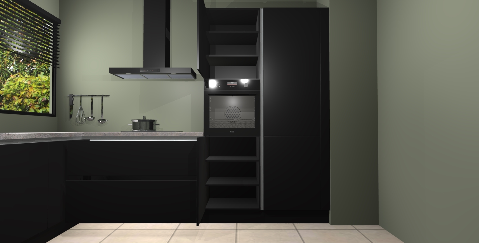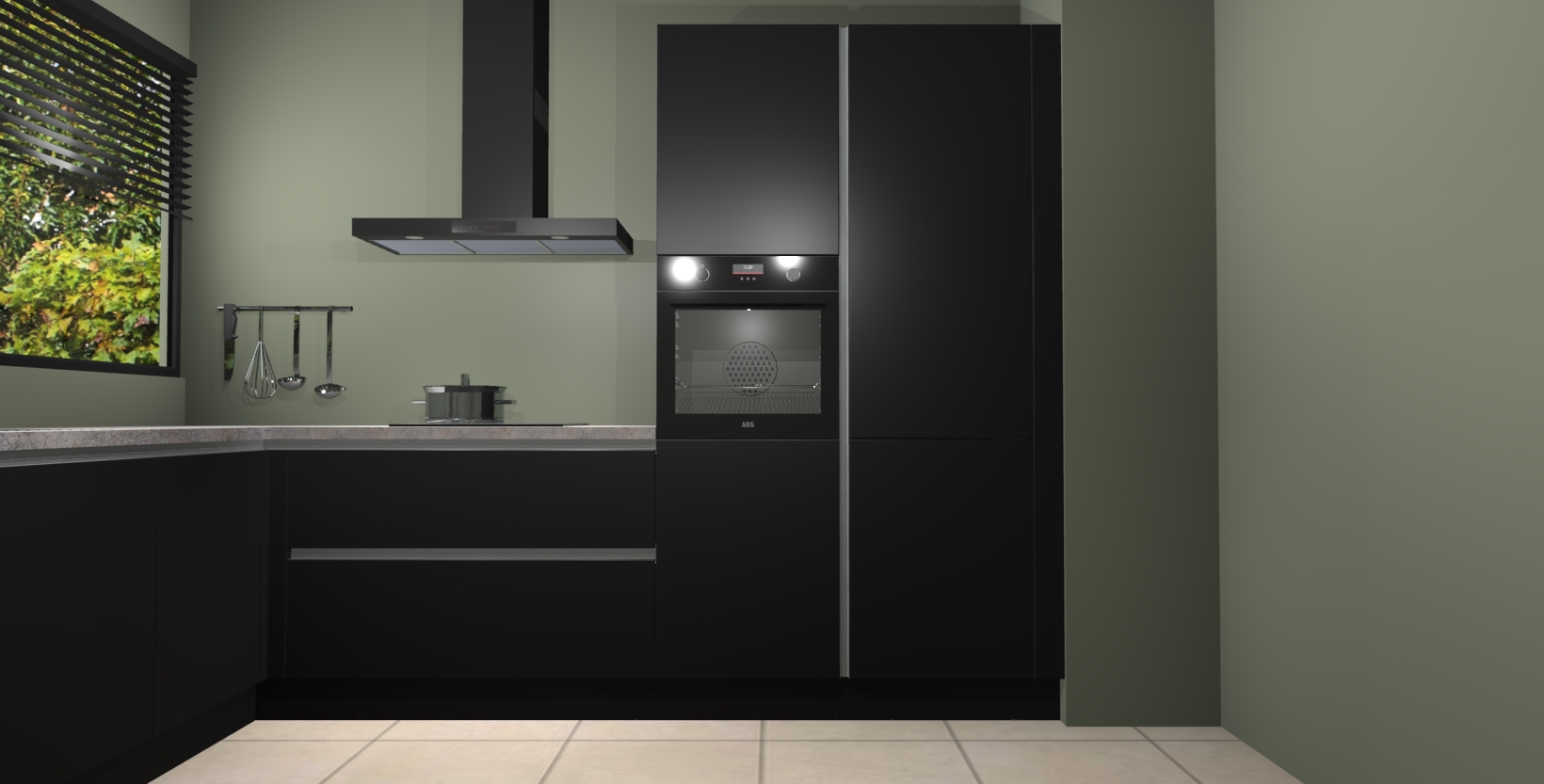 Met een modern, tijdloos design en ruime opslagruimte, zult u zich in no-time thuis voelen in uw nieuwe keuken. Uw leven wordt eenvoudiger met de soft-close deuren die voor het ultieme stille comfort zorgen - geen geluid dat u stoort terwijl u kookt. Ook is de keuken voorzien van 5 ingebouwde apparaten: een oven, inductie kookplaat, afzuigkap, vaatwasser en koelkast. Deze kunnen gemakkelijk na bestelling worden bijgewerkt naar AEG - waardoor uw luxe ervaring compleet is.