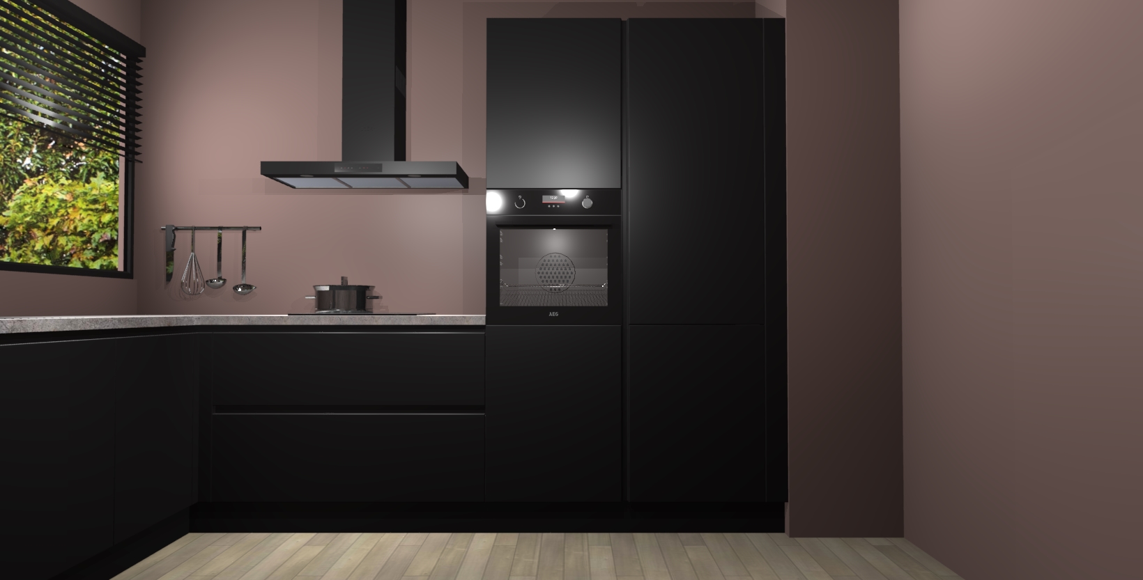 Met een modern, tijdloos design en ruime opslagruimte, zult u zich in no-time thuis voelen in uw nieuwe keuken. Uw leven wordt eenvoudiger met de soft-close deuren die voor het ultieme stille comfort zorgen - geen geluid dat u stoort terwijl u kookt. Ook is de keuken voorzien van 5 ingebouwde apparaten: een oven, inductie kookplaat, afzuigkap, vaatwasser en koelkast. Deze kunnen gemakkelijk na bestelling worden bijgewerkt naar AEG - waardoor uw luxe ervaring compleet is.