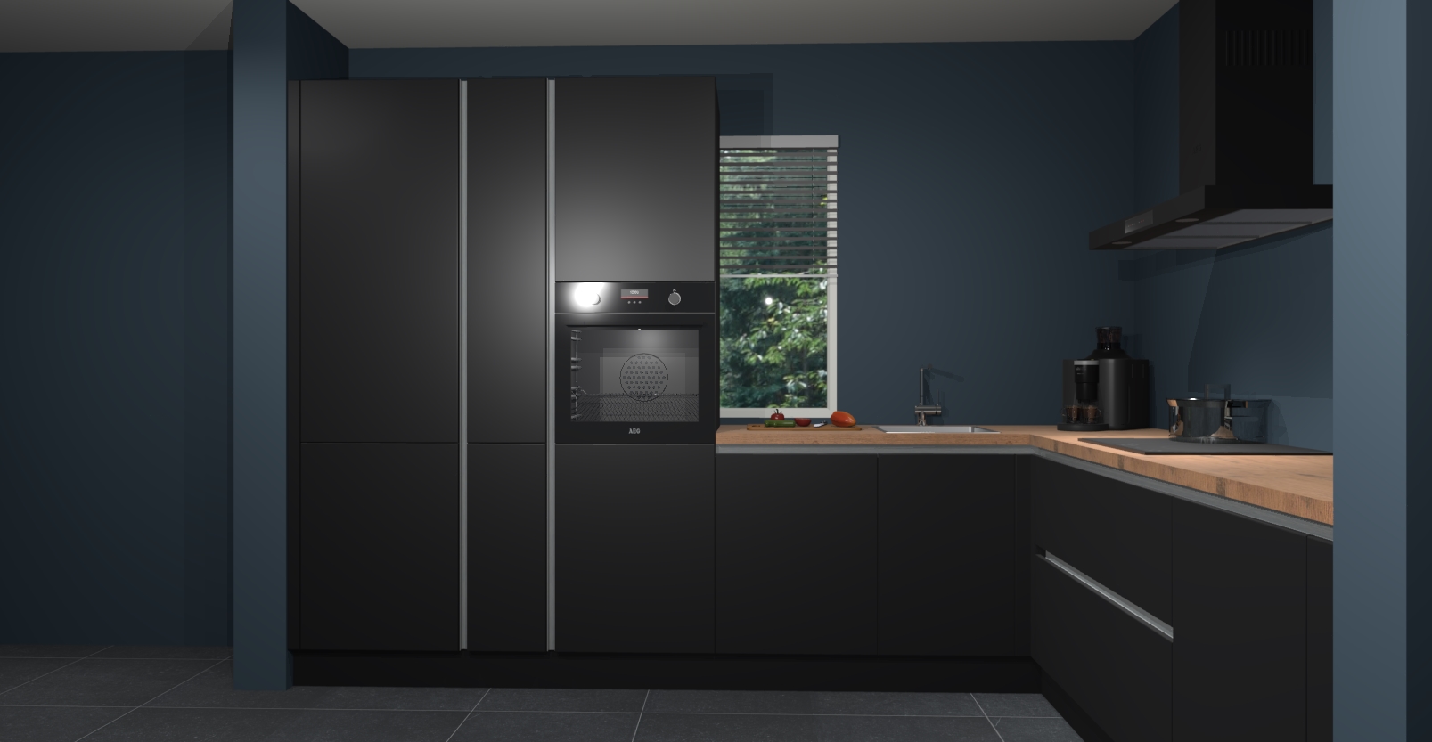 Met een modern, tijdloos design en ruime opslagruimte, zult u zich in no-time thuis voelen in uw nieuwe keuken. Uw leven wordt eenvoudiger met de soft-close deuren die voor het ultieme stille comfort zorgen - geen geluid dat u stoort terwijl u kookt. Ook is de keuken voorzien van 5 ingebouwde apparaten: een oven, inductie kookplaat, afzuigkap, vaatwasser en koelkast. Deze kunnen gemakkelijk na bestelling worden bijgewerkt naar AEG - waardoor uw luxe ervaring compleet is.