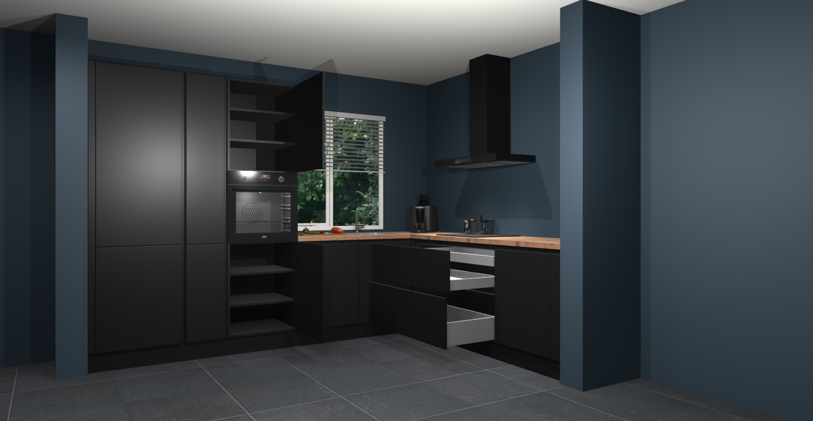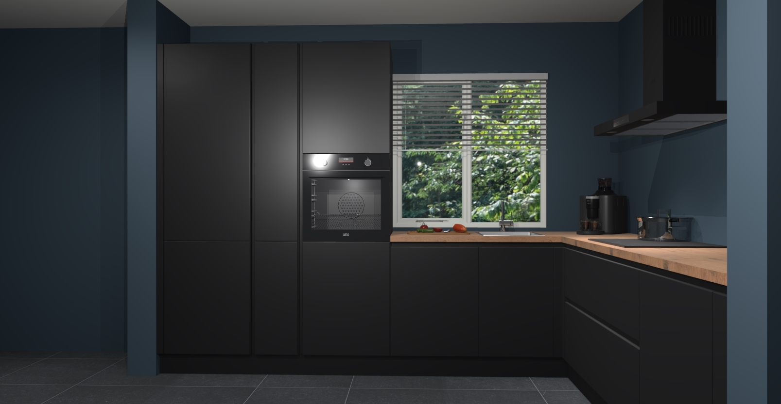 Met een modern, tijdloos design en ruime opslagruimte, zult u zich in no-time thuis voelen in uw nieuwe keuken. Uw leven wordt eenvoudiger met de soft-close deuren die voor het ultieme stille comfort zorgen - geen geluid dat u stoort terwijl u kookt. Ook is de keuken voorzien van 5 ingebouwde apparaten: een oven, inductie kookplaat, afzuigkap, vaatwasser en koelkast. Deze kunnen gemakkelijk na bestelling worden bijgewerkt naar AEG - waardoor uw luxe ervaring compleet is.
