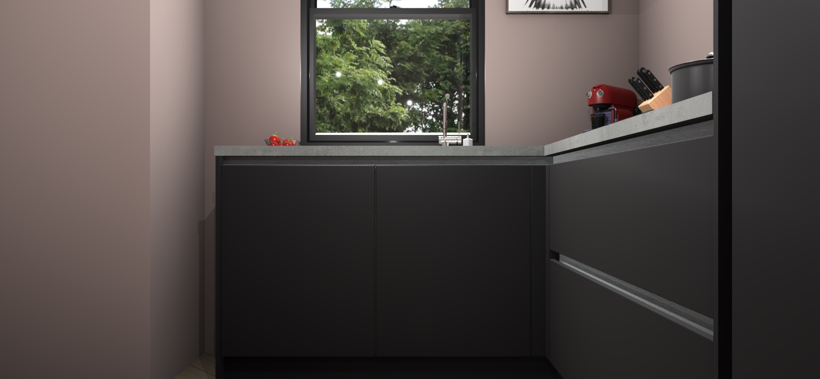 In deze box zijn alle kleuren verzameld van de deuren en werkbladen. Vraag de gratis kleurenbox aan en kijk thuis rustig verder!
