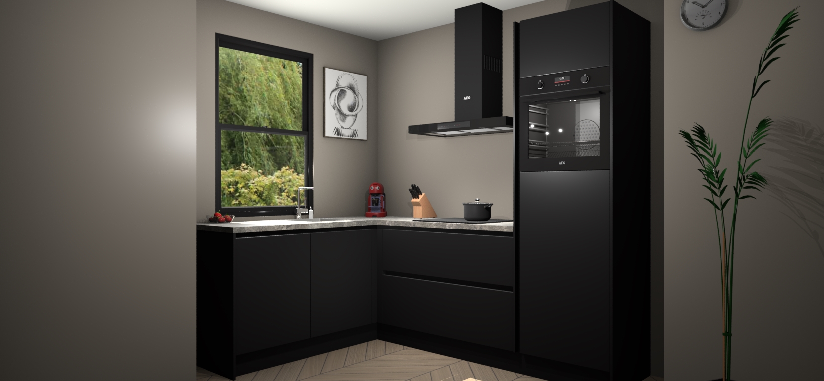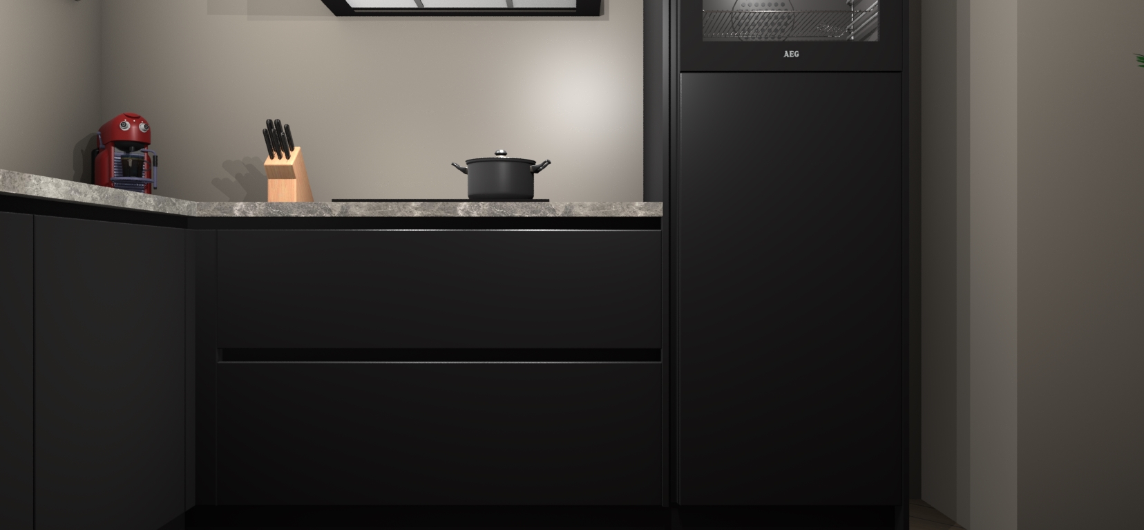 Moedige modernisten! De zwarte greeploze keuken Kinshasa is het perfecte antwoord op al uw keukendromen. Dit geraffineerde, tijdloze ontwerp combineert strakke kasten met hoogglans details zodat u die dure look krijgt zonder het dure prijskaartje. We weten dat planning en uitvoering de sleutels zijn tot een geslaagde keukenrenovatie, dus hebben we ervoor gezorgd dat we vijf inbouwapparaten in ons pakket hebben: een oven, inductiekookplaat, afzuigkap, vaatwasser en koelkast. Deze kunnen na bestelling gemakkelijk worden uitgebreid voor nog meer gemak.