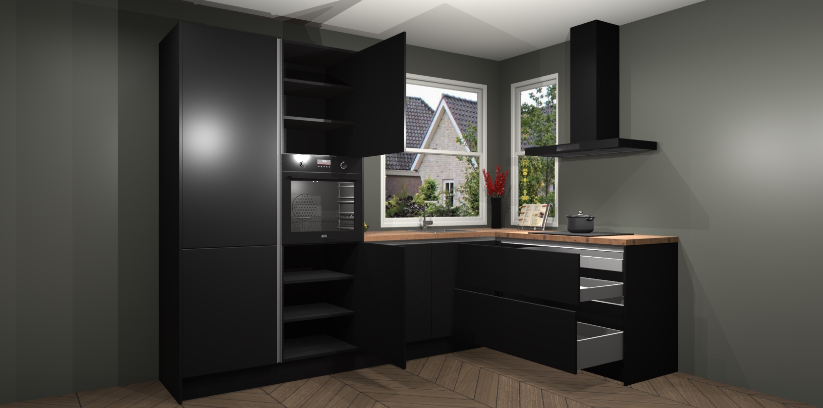 En dat is nog niet alles: u krijgt al dit gemak ook nog eens voor een vaste lage prijs! Bovendien is de levering snel: de Zwarte greeploze keuken Kotor wordt al 7 weken na bestelling geleverd! Dat klopt - we leveren ze zelfs voorgemonteerd voor uw gemak. Dus waarom wachten? Haal de Zwarte greeploze keuken Kotor vandaag nog in huis - een prachtige hoekkeuken met alle toeters en bellen die uw huis nodig heeft. Wacht niet - handel nu zolang de voorraad strekt!