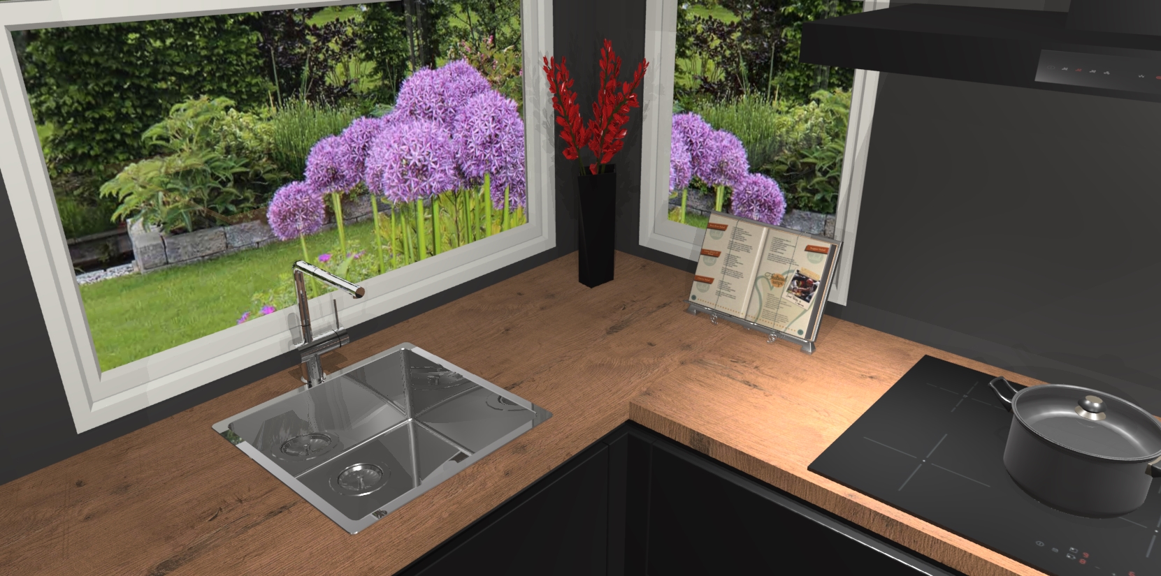 We hebben iets speciaals voor u: de Zwarte greeploze keuken Kotor. Het is een hoekkeuken die sfeer en warmte uitstraalt, en zijn hout-look geeft hem een unieke touch. Perfect voor elk huis!