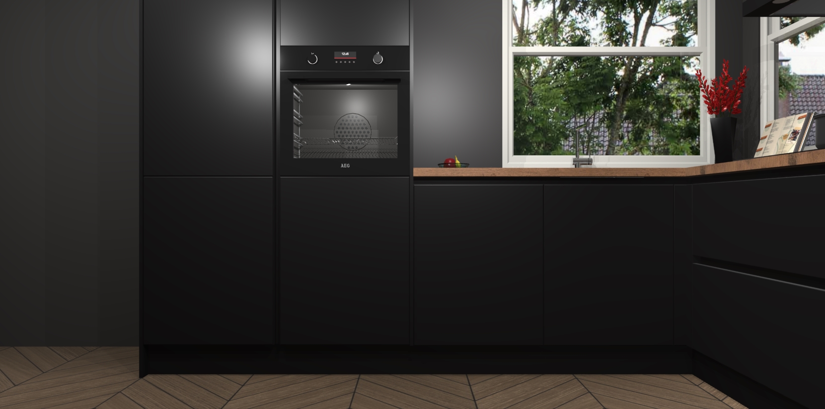 De Zwarte greeploze keuken Kotor wordt geleverd met vijf inbouwapparaten, waaronder een oven, inductiekookplaat, afzuigkap, vaatwasser en koelkast. En als u uw apparatuur wilt upgraden, kunnen we u na bestelling eenvoudig helpen overstappen naar AEG. Bovendien heeft deze keuken soft close deuren, zodat lades en kastjes geruisloos en zonder klepperen sluiten!