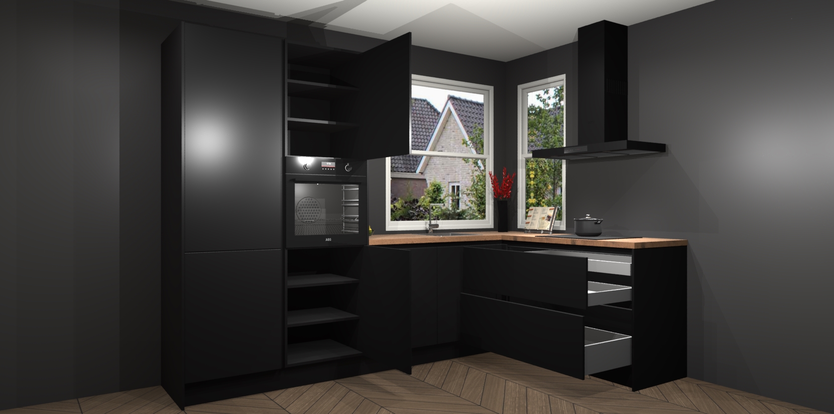 En dat is nog niet alles: u krijgt al dit gemak ook nog eens voor een vaste lage prijs! Bovendien is de levering snel: de Zwarte greeploze keuken Kotor wordt al 7 weken na bestelling geleverd! Dat klopt - we leveren ze zelfs voorgemonteerd voor uw gemak. Dus waarom wachten? Haal de Zwarte greeploze keuken Kotor vandaag nog in huis - een prachtige hoekkeuken met alle toeters en bellen die uw huis nodig heeft. Wacht niet - handel nu zolang de voorraad strekt!