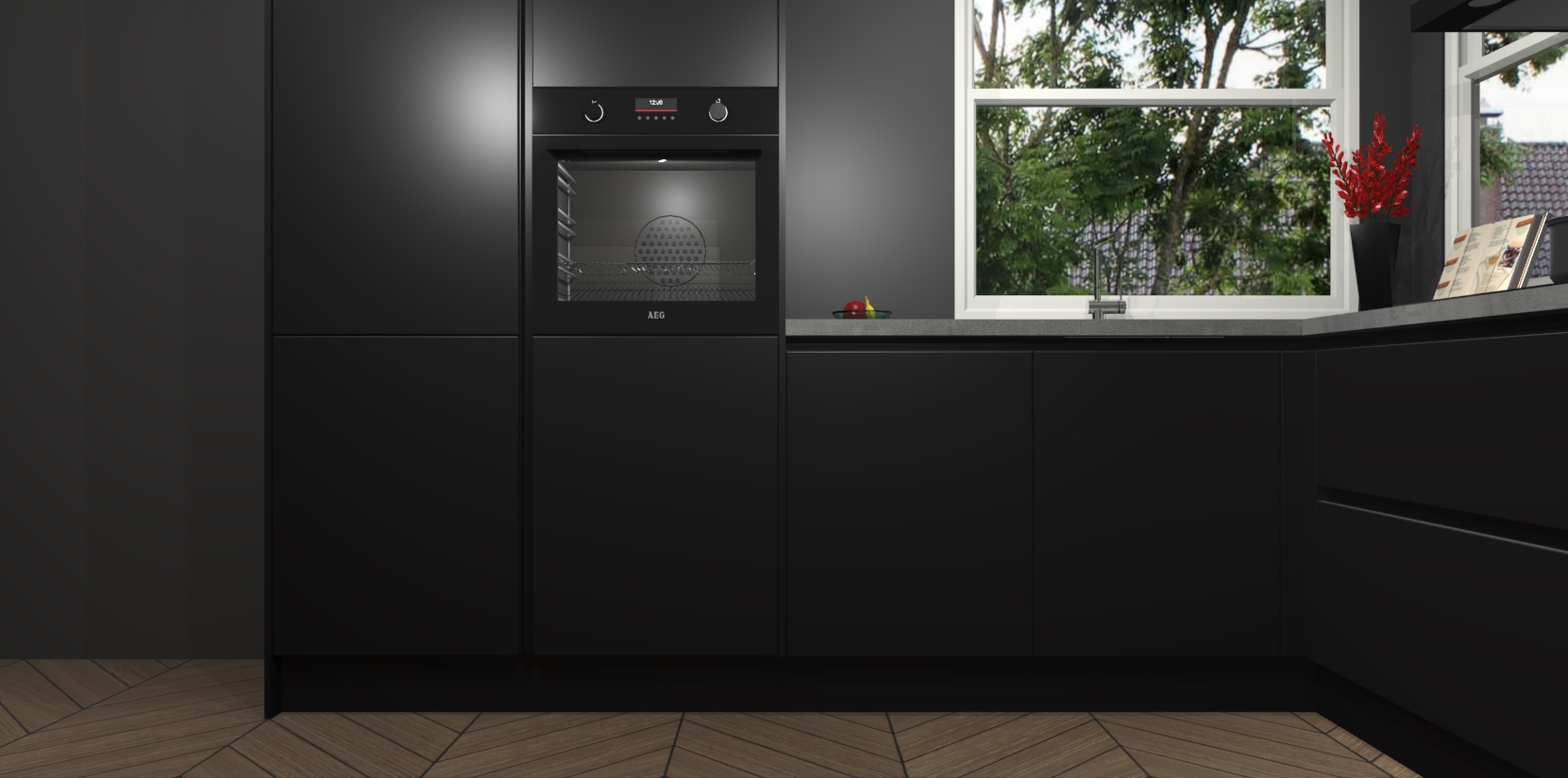 De Zwarte greeploze keuken Kotor wordt geleverd met vijf inbouwapparaten, waaronder een oven, inductiekookplaat, afzuigkap, vaatwasser en koelkast. En als u uw apparatuur wilt upgraden, kunnen we u na bestelling eenvoudig helpen overstappen naar AEG. Bovendien heeft deze keuken soft close deuren, zodat lades en kastjes geruisloos en zonder klepperen sluiten!
