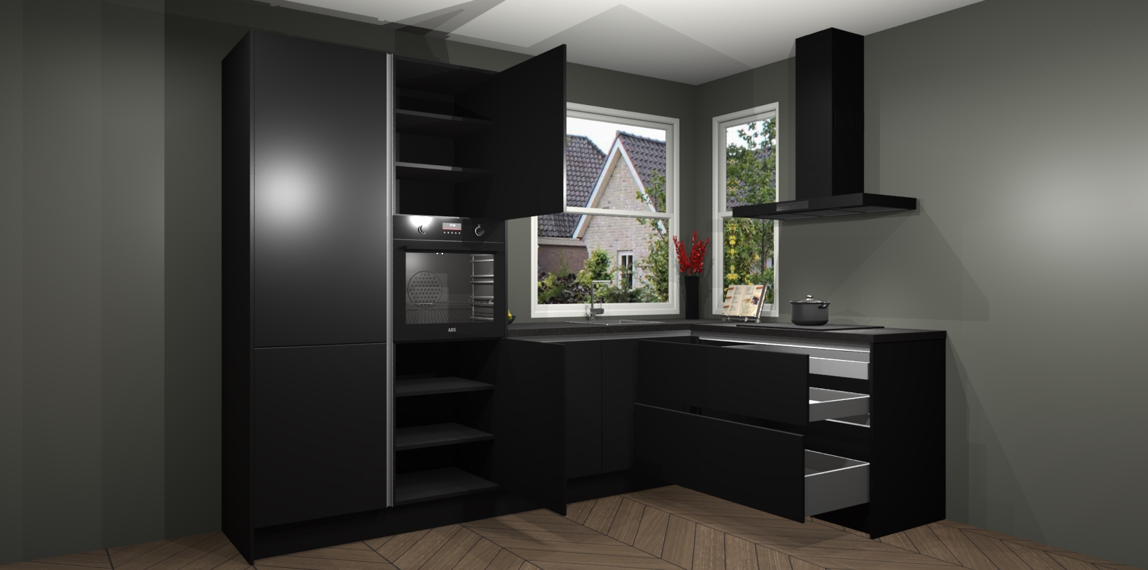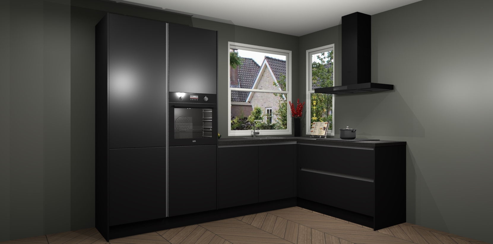 De Zwarte greeploze keuken Kotor wordt geleverd met vijf inbouwapparaten, waaronder een oven, inductiekookplaat, afzuigkap, vaatwasser en koelkast. En als u uw apparatuur wilt upgraden, kunnen we u na bestelling eenvoudig helpen overstappen naar AEG. Bovendien heeft deze keuken soft close deuren, zodat lades en kastjes geruisloos en zonder klepperen sluiten!