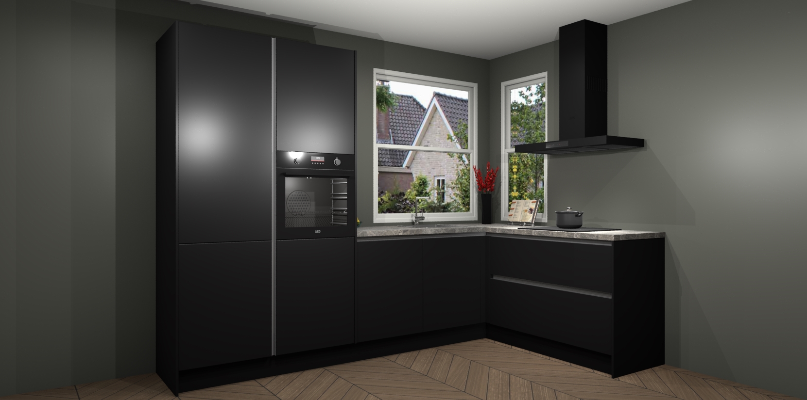 De Zwarte greeploze keuken Kotor wordt geleverd met vijf inbouwapparaten, waaronder een oven, inductiekookplaat, afzuigkap, vaatwasser en koelkast. En als u uw apparatuur wilt upgraden, kunnen we u na bestelling eenvoudig helpen overstappen naar AEG. Bovendien heeft deze keuken soft close deuren, zodat lades en kastjes geruisloos en zonder klepperen sluiten!