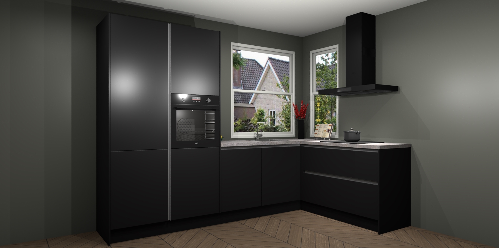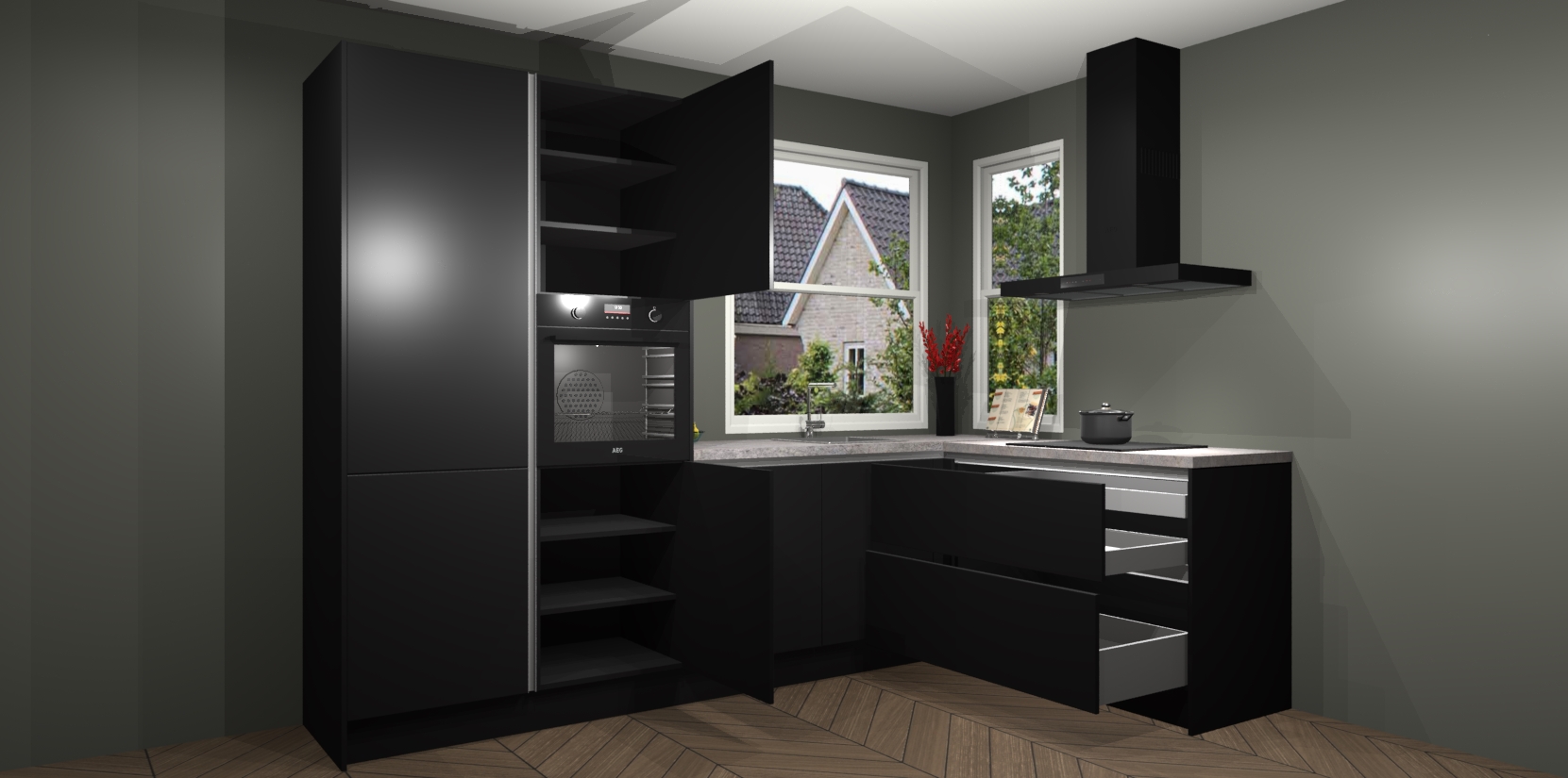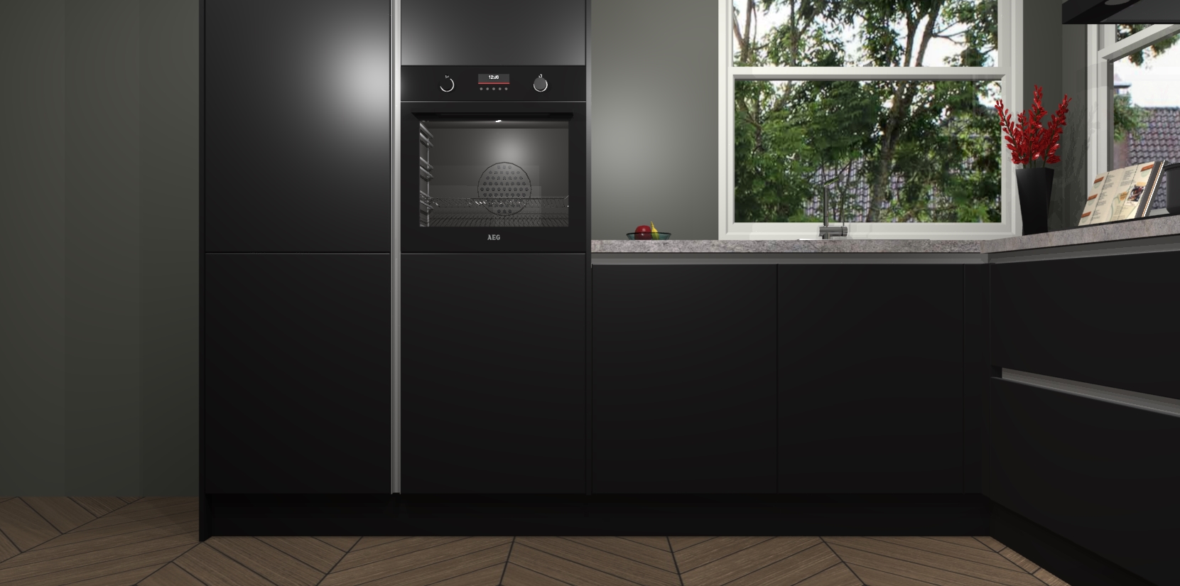 De Zwarte greeploze keuken Kotor wordt geleverd met vijf inbouwapparaten, waaronder een oven, inductiekookplaat, afzuigkap, vaatwasser en koelkast. En als u uw apparatuur wilt upgraden, kunnen we u na bestelling eenvoudig helpen overstappen naar AEG. Bovendien heeft deze keuken soft close deuren, zodat lades en kastjes geruisloos en zonder klepperen sluiten!