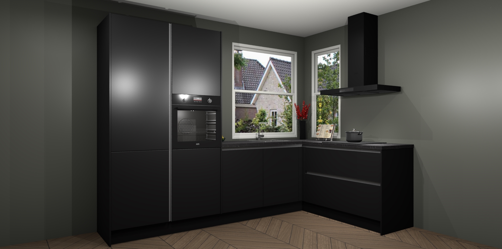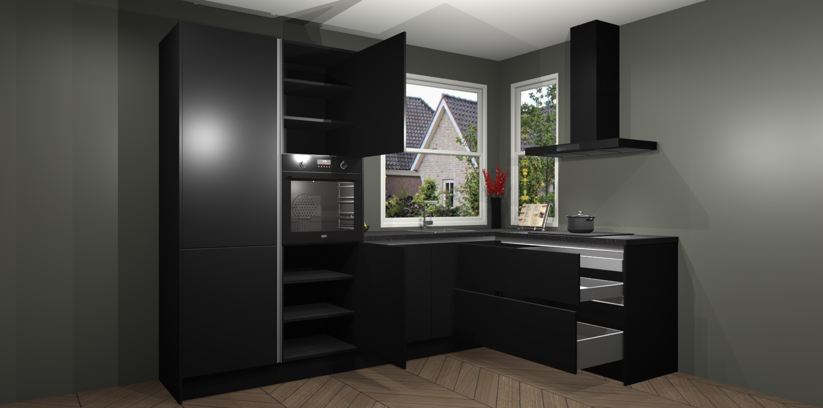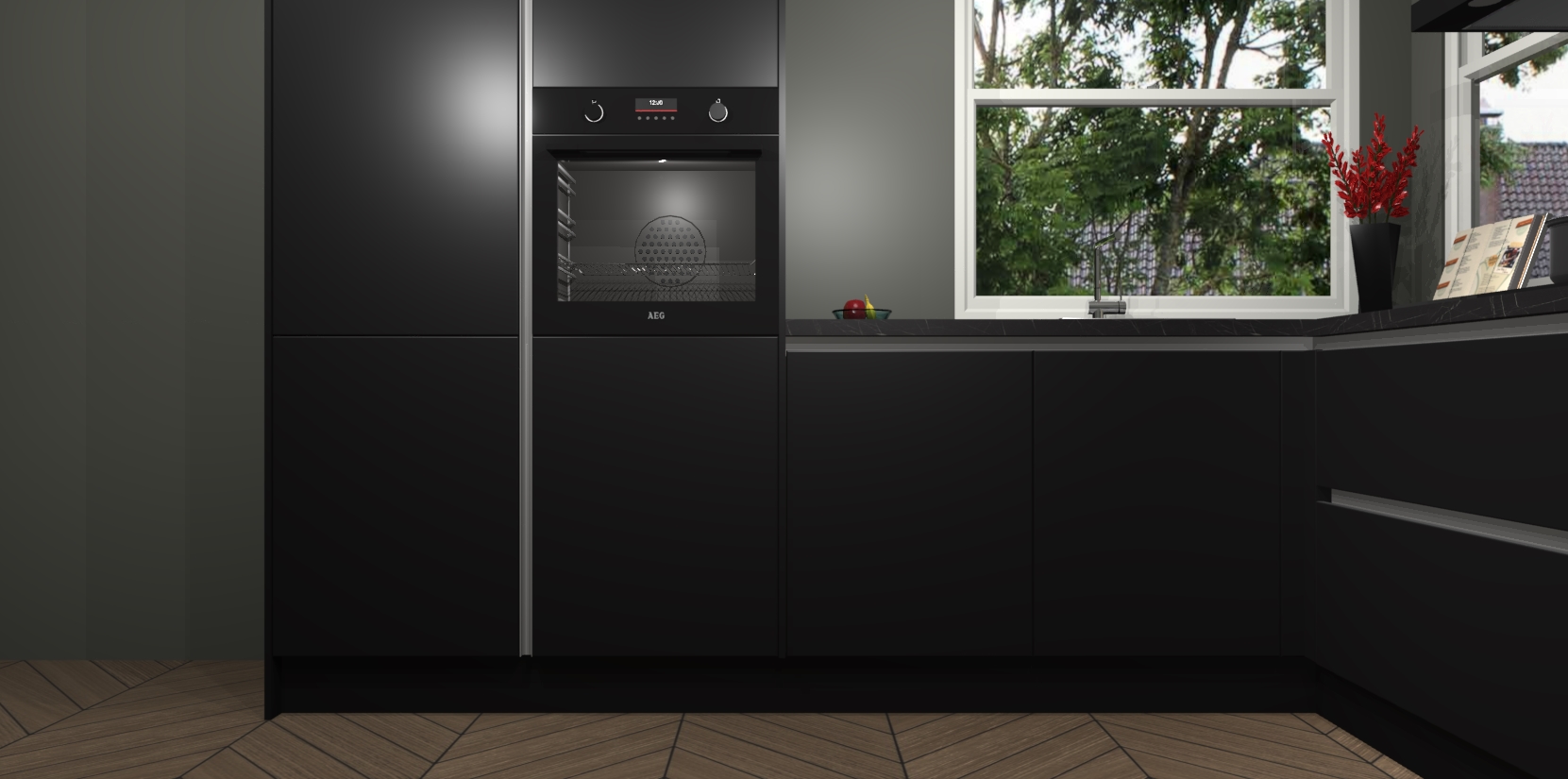 De Zwarte greeploze keuken Kotor wordt geleverd met vijf inbouwapparaten, waaronder een oven, inductiekookplaat, afzuigkap, vaatwasser en koelkast. En als u uw apparatuur wilt upgraden, kunnen we u na bestelling eenvoudig helpen overstappen naar AEG. Bovendien heeft deze keuken soft close deuren, zodat lades en kastjes geruisloos en zonder klepperen sluiten!