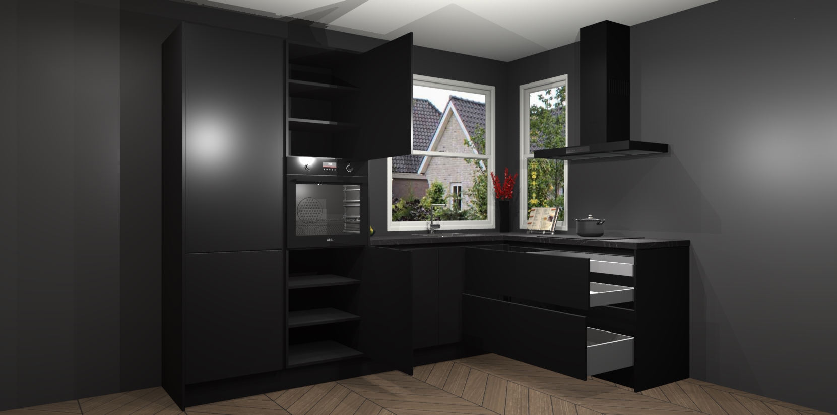 En dat is nog niet alles: u krijgt al dit gemak ook nog eens voor een vaste lage prijs! Bovendien is de levering snel: de Zwarte greeploze keuken Kotor wordt al 7 weken na bestelling geleverd! Dat klopt - we leveren ze zelfs voorgemonteerd voor uw gemak. Dus waarom wachten? Haal de Zwarte greeploze keuken Kotor vandaag nog in huis - een prachtige hoekkeuken met alle toeters en bellen die uw huis nodig heeft. Wacht niet - handel nu zolang de voorraad strekt!