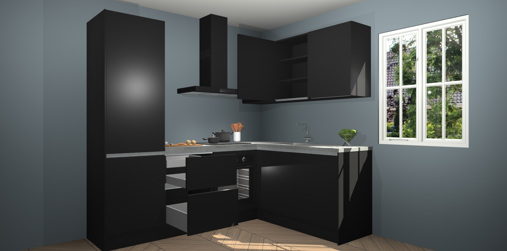 Bestellen was nog nooit zo makkelijk en we leveren met slechts 7 weken; zodra de keuken arriveert staan de kasten voor gemonteerd klaar om er alles aan te doen dat u hem gemakkelijk zelf kunt installeren! Eén ding is zeker: met de Zwarte greeploze keuken Krakau slaagt u erin modischer, modernere keukens uit te rusten die tientallen jaren meegaan! Haal snel uw Zwarte greeploze keuken Krakau - of u nu net begint of al 'levenservaring' hebt in de keukendroomloopbaan - want dit topmodel van onze collectie wilt u absoluut niet missen.