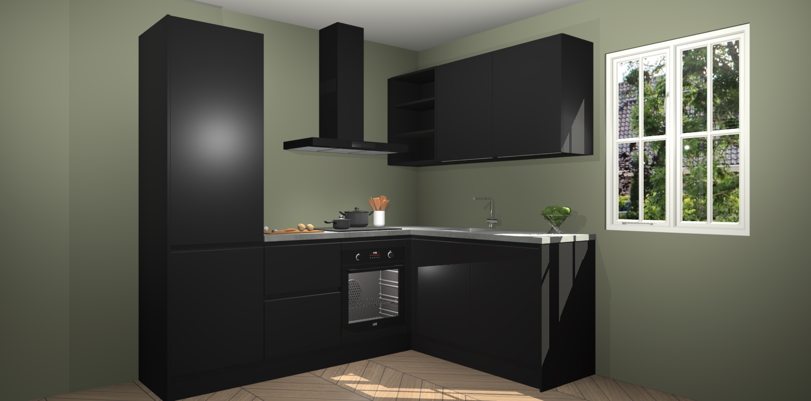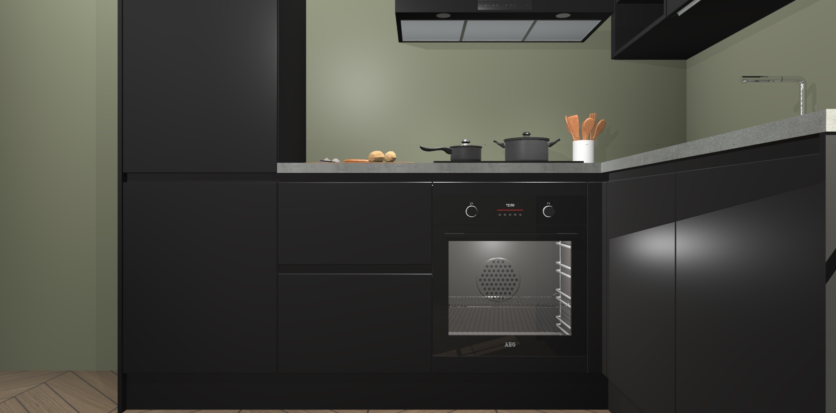 Dit model biedt u voldoende opbergruimte en vijf ingebouwde apparaten: een oven, inductiekookplaat, afzuigkap, vaatwasser en koelkast. Deze apparaten kunnen gemakkelijk worden geüpgrade naar AEG nadat u besteld heeft. De verschillende laden en kastjes bevatten softclose-deuren waardoor ze gezellig dichtvallen met een geruststellend helemaal geruisloos geluid. En dat is nog niet alles! We garanderen ook dat de prijs altijd laag blijft - dus haal nu uw Zwarte greeploze keuken Krakau terwijl het kan.