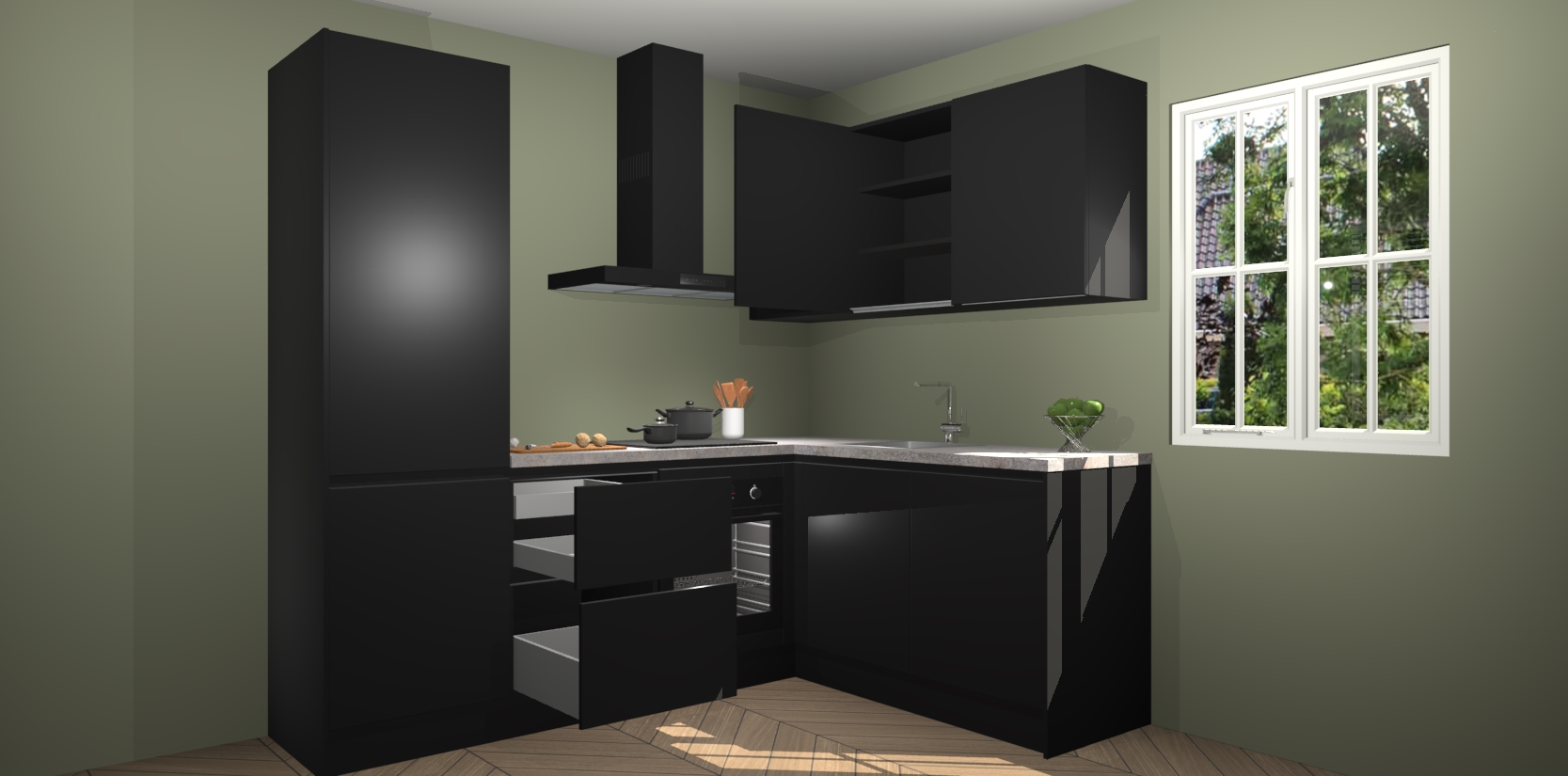 Bestellen was nog nooit zo makkelijk en we leveren met slechts 7 weken; zodra de keuken arriveert staan de kasten voor gemonteerd klaar om er alles aan te doen dat u hem gemakkelijk zelf kunt installeren! Eén ding is zeker: met de Zwarte greeploze keuken Krakau slaagt u erin modischer, modernere keukens uit te rusten die tientallen jaren meegaan! Haal snel uw Zwarte greeploze keuken Krakau - of u nu net begint of al 'levenservaring' hebt in de keukendroomloopbaan - want dit topmodel van onze collectie wilt u absoluut niet missen.