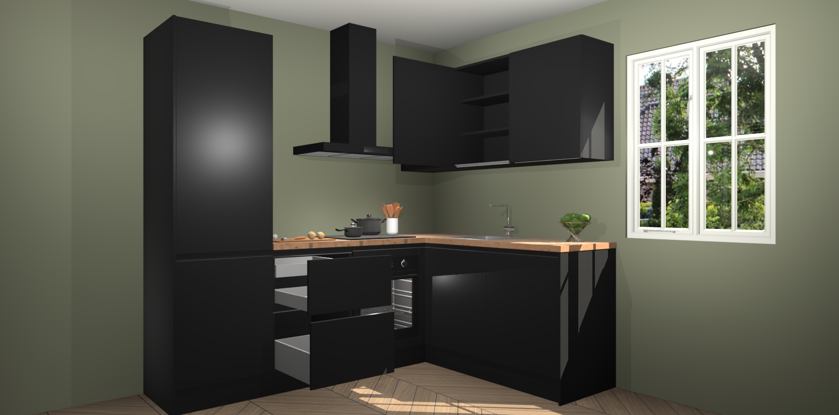 Bestellen was nog nooit zo makkelijk en we leveren met slechts 7 weken; zodra de keuken arriveert staan de kasten voor gemonteerd klaar om er alles aan te doen dat u hem gemakkelijk zelf kunt installeren! Eén ding is zeker: met de Zwarte greeploze keuken Krakau slaagt u erin modischer, modernere keukens uit te rusten die tientallen jaren meegaan! Haal snel uw Zwarte greeploze keuken Krakau - of u nu net begint of al 'levenservaring' hebt in de keukendroomloopbaan - want dit topmodel van onze collectie wilt u absoluut niet missen.