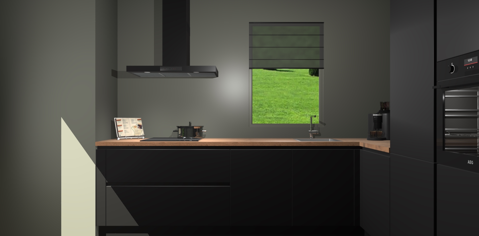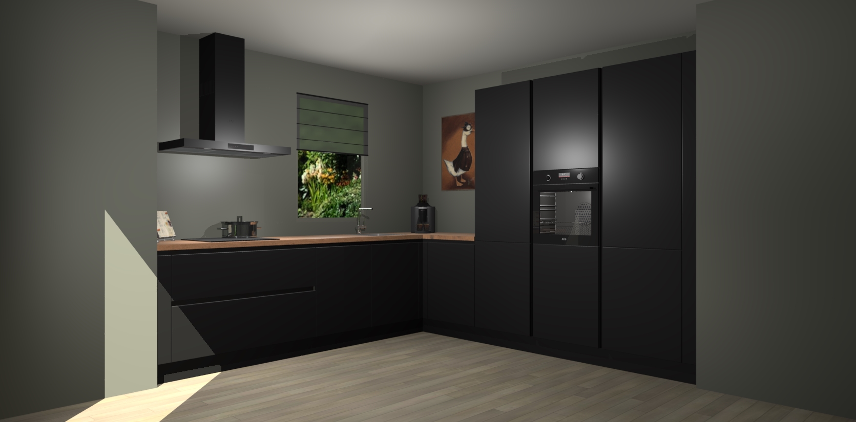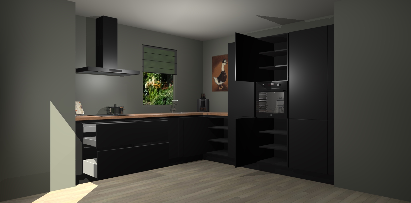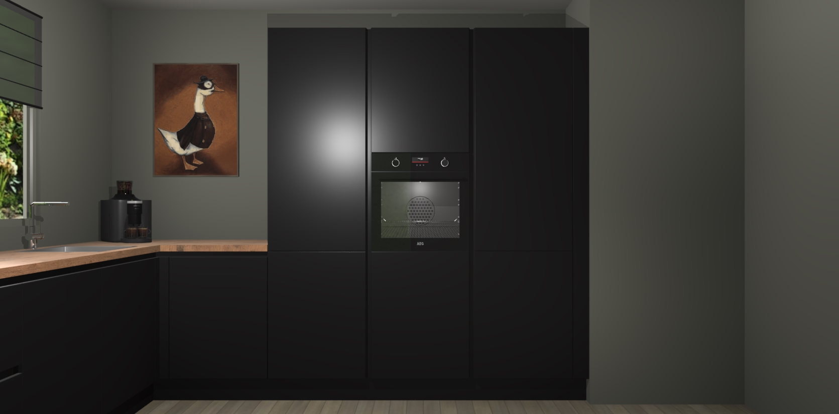 Welkom bij de Zwarte greeploze keuken Laos. Deze prachtige keuken zal de komende jaren het middelpunt van de belangstelling in uw huis zijn. Uitgerust met vijf inbouwapparaten komt u nooit kookgereedschap tekort. Bovendien geeft de warme houtlook elke ruimte een uitnodigende en tijdloze uitstraling.