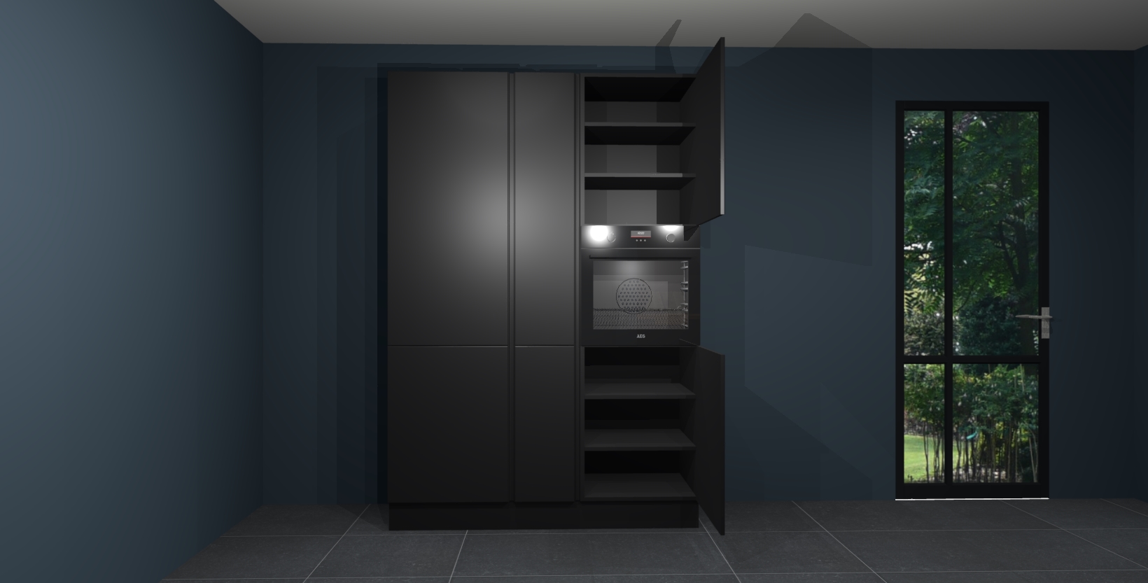 Met een modern, tijdloos design en ruime opslagruimte, zult u zich in no-time thuis voelen in uw nieuwe keuken. Uw leven wordt eenvoudiger met de soft-close deuren die voor het ultieme stille comfort zorgen - geen geluid dat u stoort terwijl u kookt. Ook is de keuken voorzien van 5 ingebouwde apparaten: een oven, inductie kookplaat, afzuigkap, vaatwasser en koelkast. Deze kunnen gemakkelijk na bestelling worden bijgewerkt naar AEG - waardoor uw luxe ervaring compleet is.