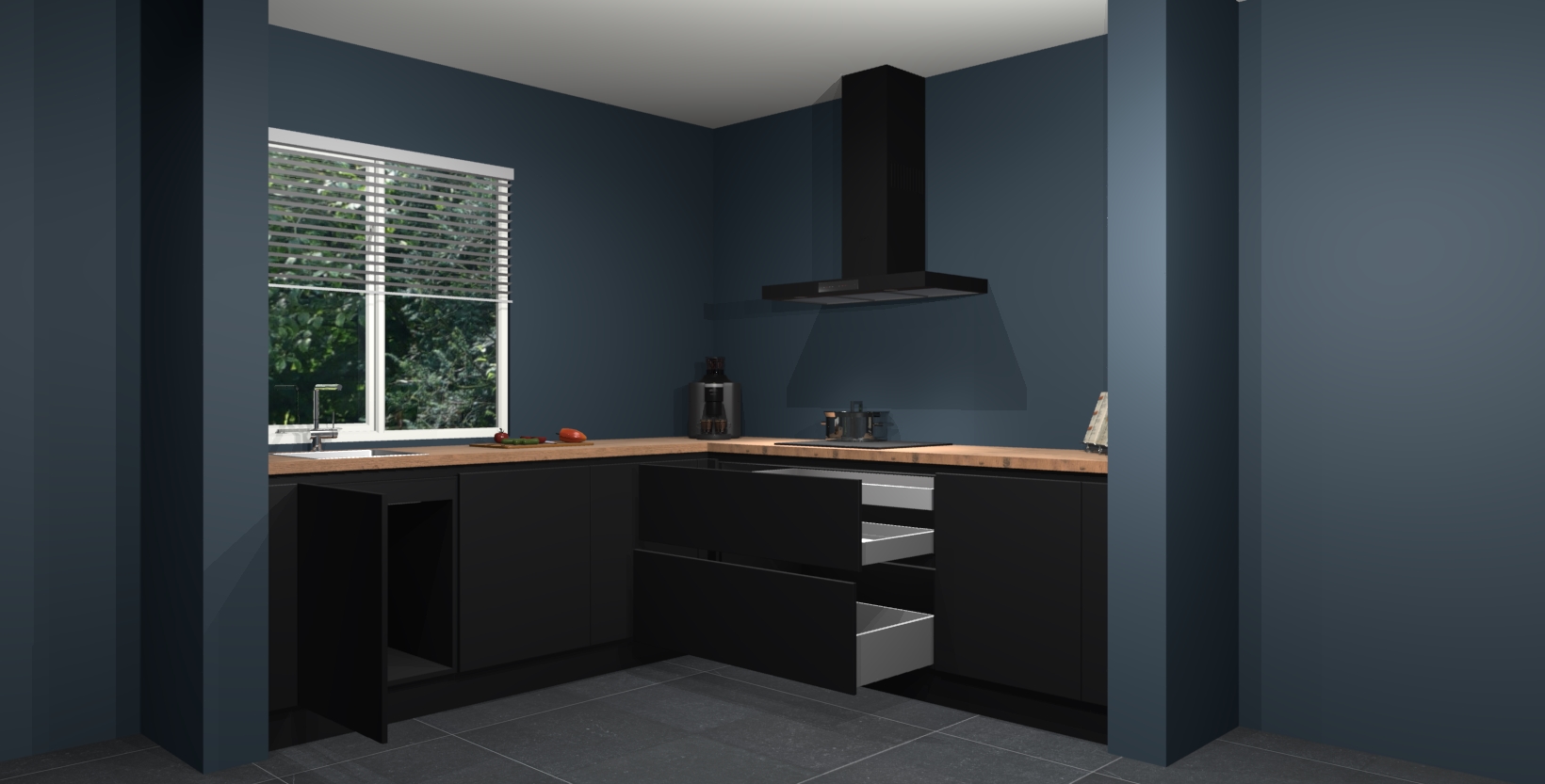 In deze box zijn alle kleuren verzameld van de deuren en werkbladen. Vraag de gratis kleurenbox aan en kijk thuis rustig verder!