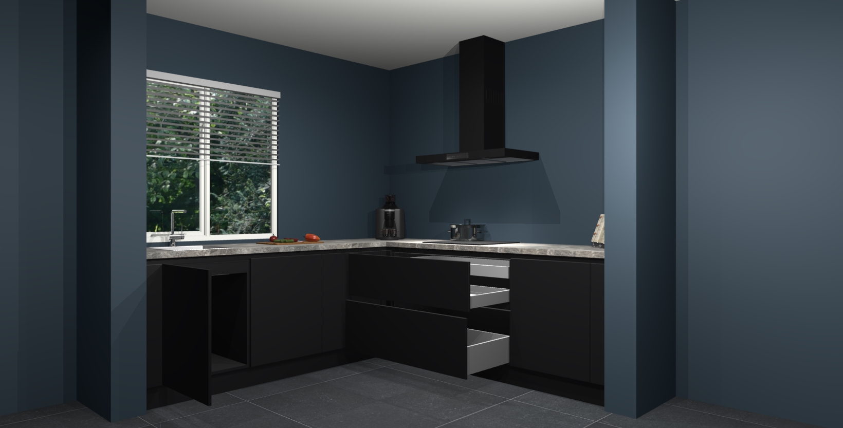 In deze box zijn alle kleuren verzameld van de deuren en werkbladen. Vraag de gratis kleurenbox aan en kijk thuis rustig verder!