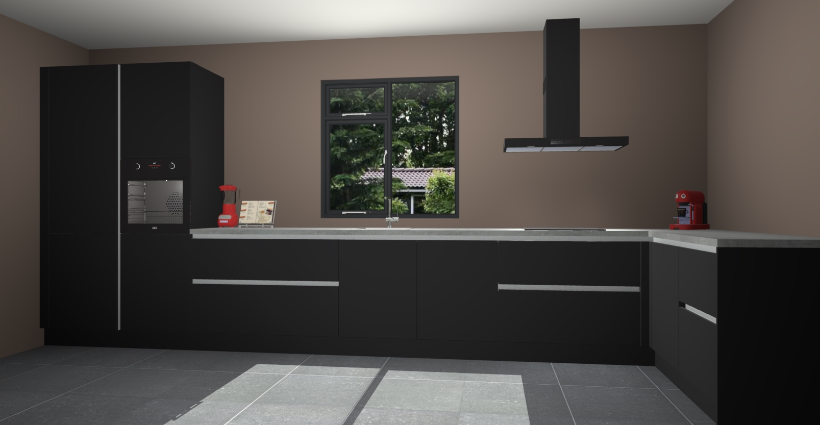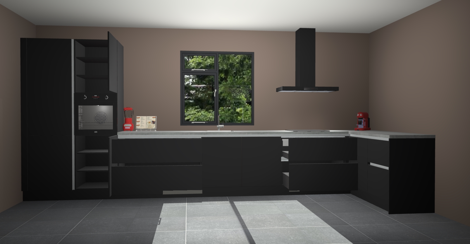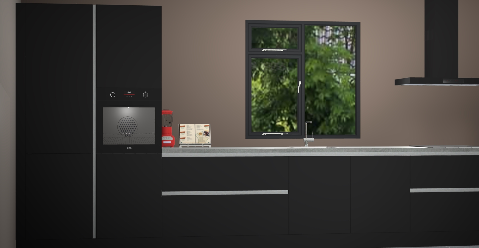 De Zwarte keuken Lille wordt geleverd met vijf inbouwapparaten - een oven, inductiekookplaat, afzuigkap, vaatwasser en koelkast. Maar dat is nog niet alles! Na bestelling kunnen deze apparaten eenvoudig worden geüpgraded naar premium AEG-apparatuur. Bovendien is er zelfs de optie om de oven te vervangen door een combimagnetron of uw inductiekookplaat te vervangen door een kookplaat met geïntegreerde afzuiging.