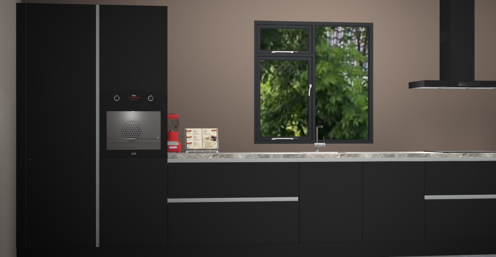 De Zwarte keuken Lille wordt geleverd met vijf inbouwapparaten - een oven, inductiekookplaat, afzuigkap, vaatwasser en koelkast. Maar dat is nog niet alles! Na bestelling kunnen deze apparaten eenvoudig worden geüpgraded naar premium AEG-apparatuur. Bovendien is er zelfs de optie om de oven te vervangen door een combimagnetron of uw inductiekookplaat te vervangen door een kookplaat met geïntegreerde afzuiging.