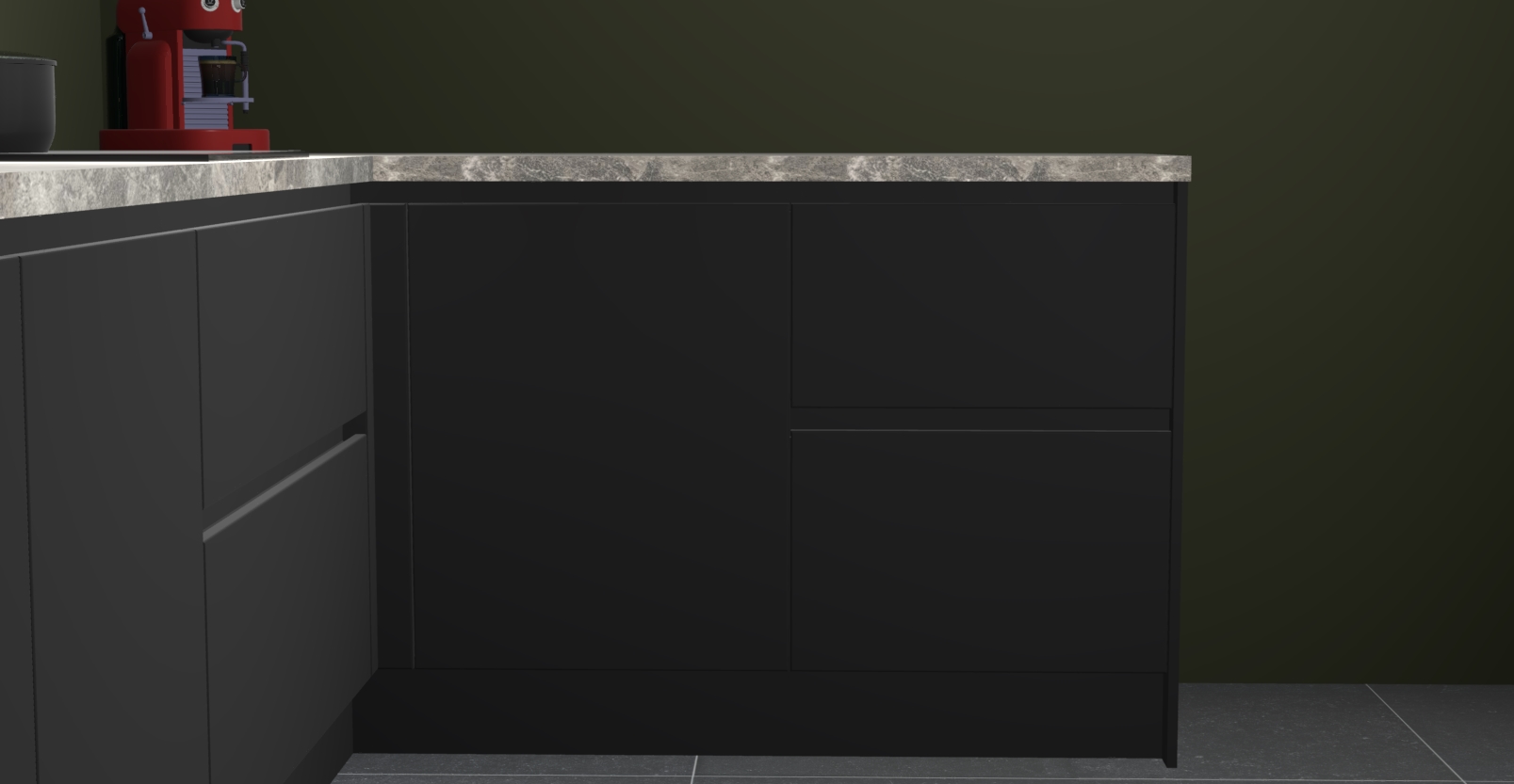 De Zwarte keuken Lille wordt geleverd met vijf inbouwapparaten - een oven, inductiekookplaat, afzuigkap, vaatwasser en koelkast. Maar dat is nog niet alles! Na bestelling kunnen deze apparaten eenvoudig worden geüpgraded naar premium AEG-apparatuur. Bovendien is er zelfs de optie om de oven te vervangen door een combimagnetron of uw inductiekookplaat te vervangen door een kookplaat met geïntegreerde afzuiging.