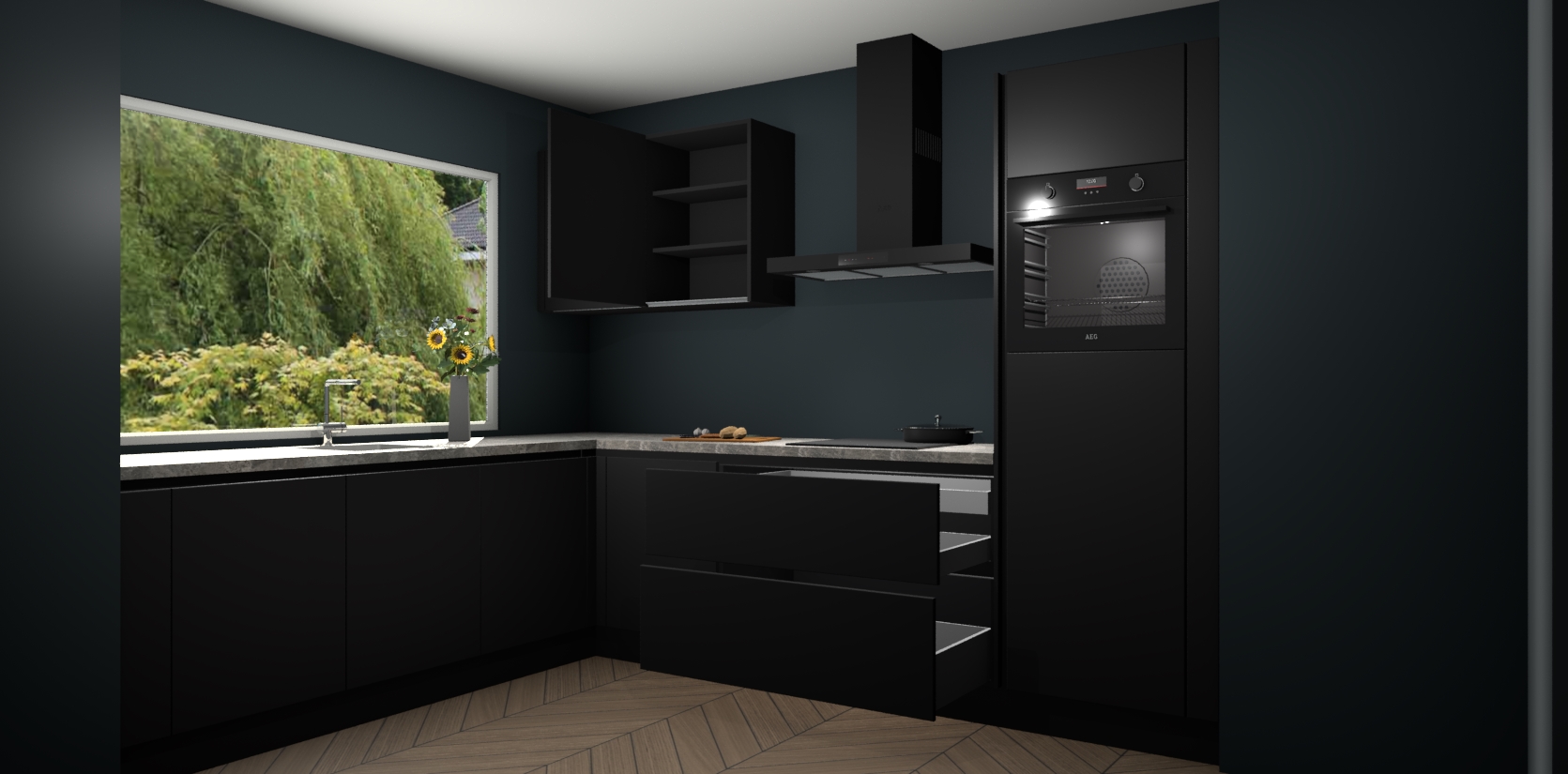 Bent u op zoek naar een onberispelijk keukenontwerp dat Duitse precisie en uitmuntende architectuur ademt? Zoek niet verder - de zwarte greeploze keuken Limonos biedt de perfecte moderne mix van stijl en functionaliteit.