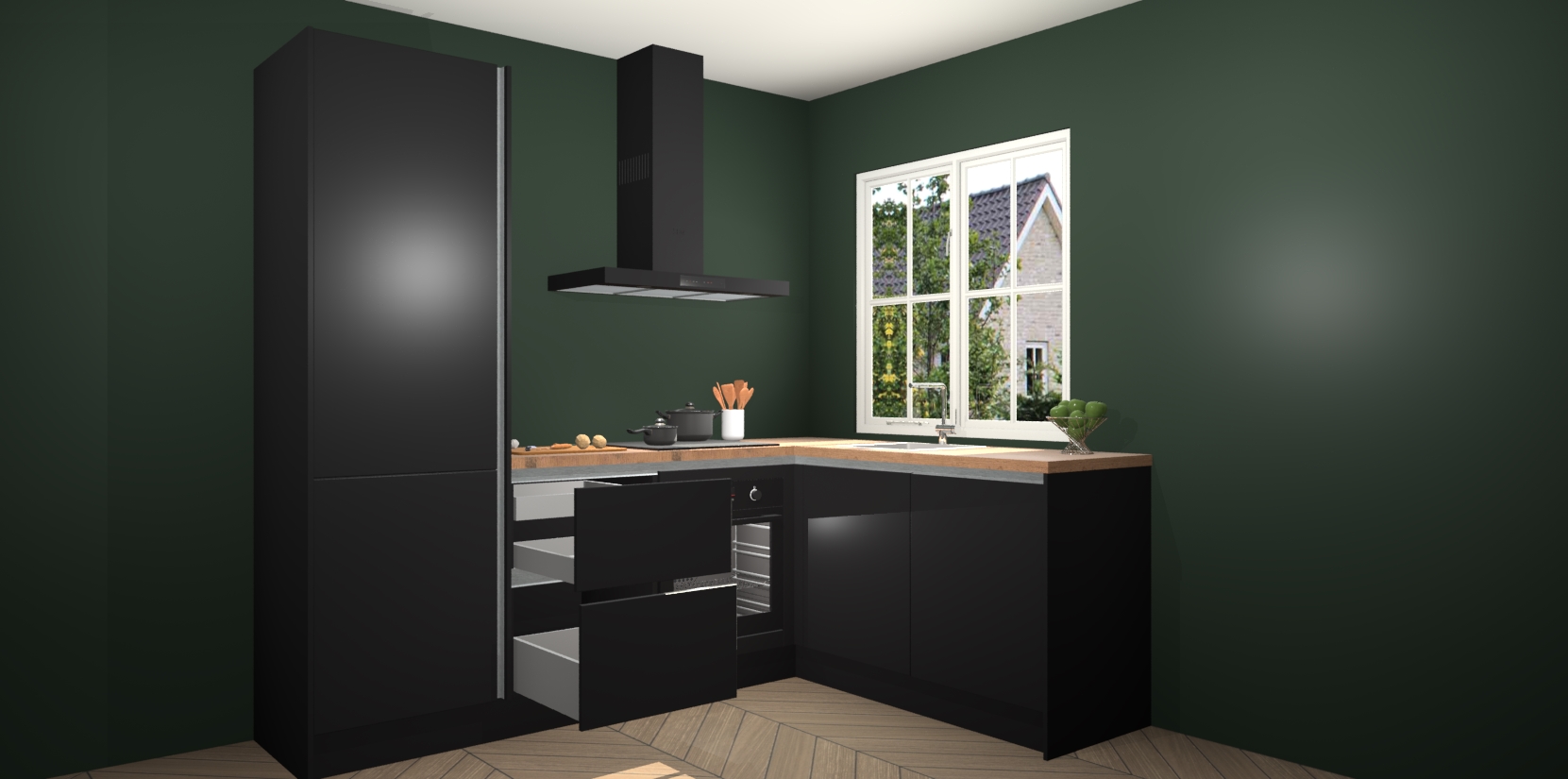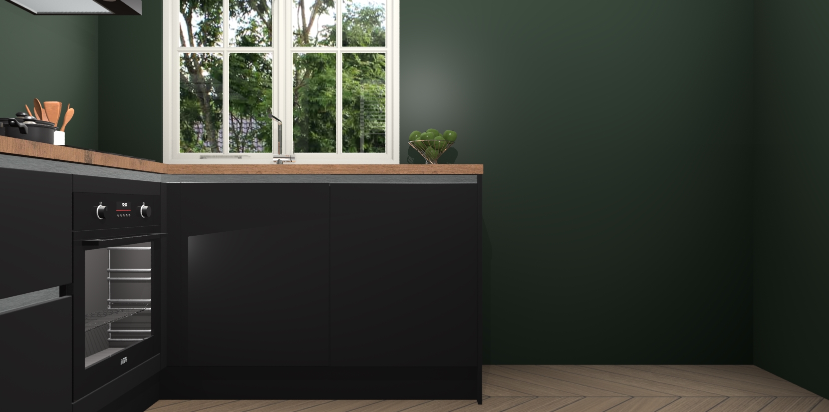 De Zwarte greeploze keuken Linz is de perfecte keuze voor uw nieuwe moderne en tijdloze keuken. Ga voor moderne en tijdloze elegantie in uw keuken. De prachtige hoekkeuken biedt een verfrissende kijk op de manier waarop we ons vertrouwde keukenontwerp kunnen aanpassen in een nieuwe stijl. Één blik om alles te zien: zo mooi dat het bijna magisch lijkt.