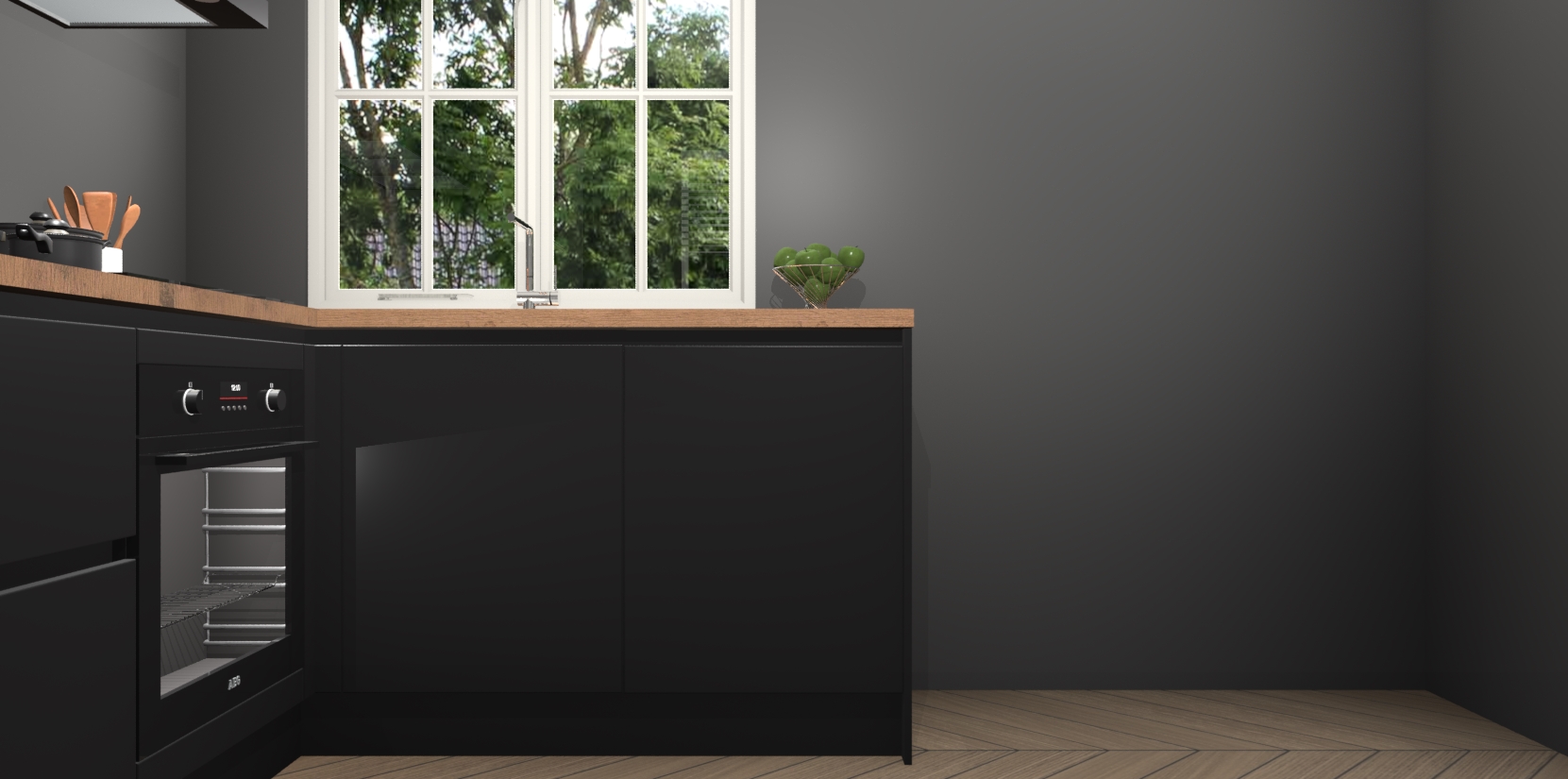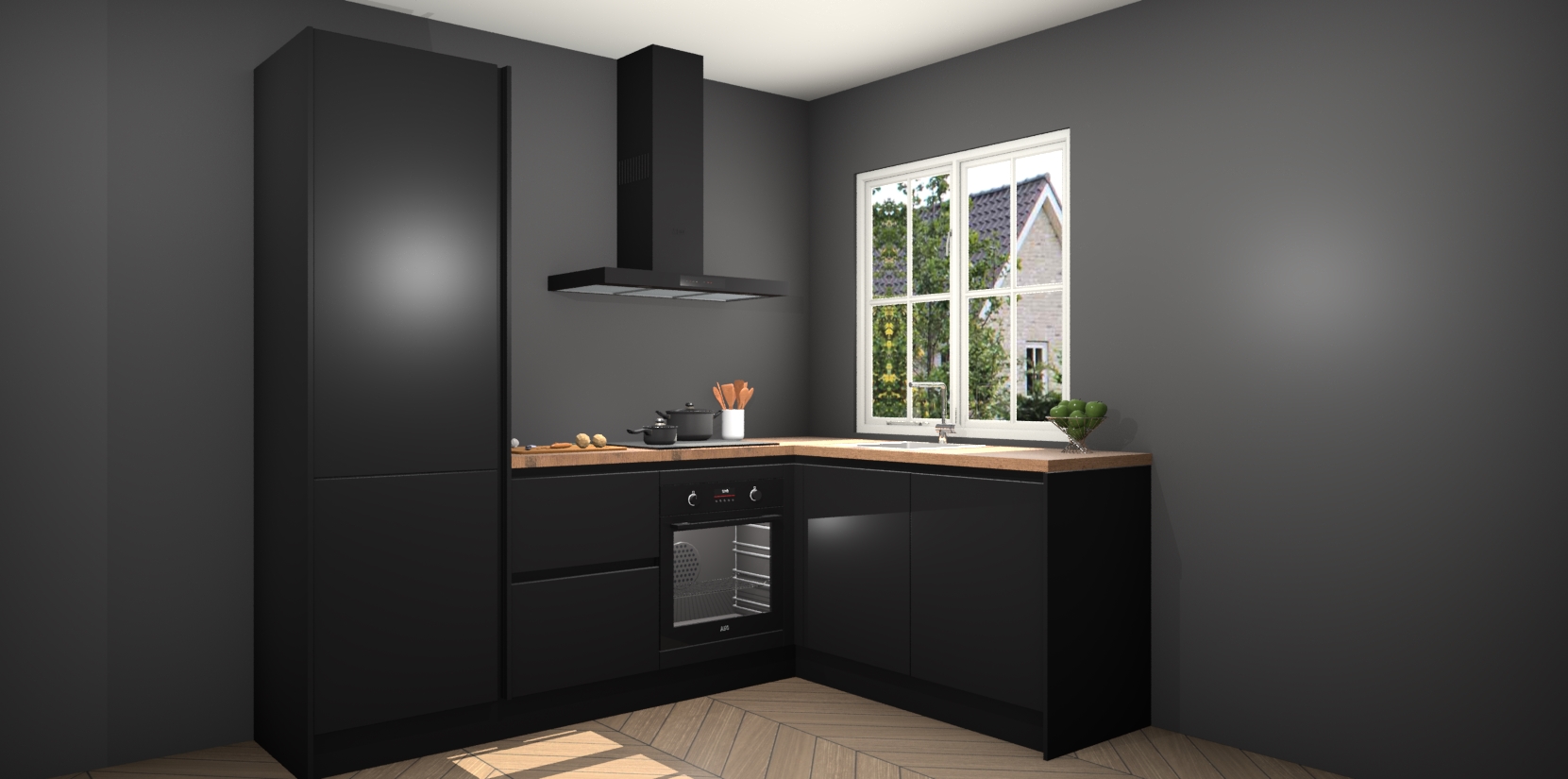 De Zwarte greeploze keuken Linz is de perfecte keuze voor uw nieuwe moderne en tijdloze keuken. Ga voor moderne en tijdloze elegantie in uw keuken. De prachtige hoekkeuken biedt een verfrissende kijk op de manier waarop we ons vertrouwde keukenontwerp kunnen aanpassen in een nieuwe stijl.  Één blik om alles te zien: zo mooi dat het bijna magisch lijkt.