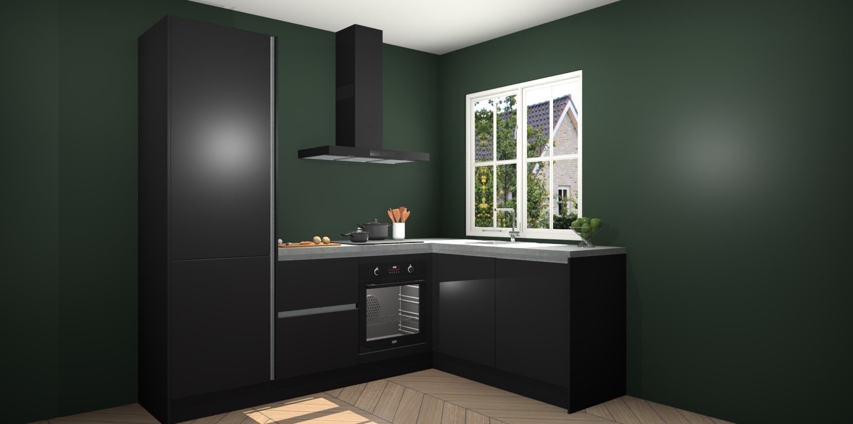De Zwarte greeploze keuken Linz is de perfecte keuze voor uw nieuwe moderne en tijdloze keuken. Ga voor moderne en tijdloze elegantie in uw keuken. De prachtige hoekkeuken biedt een verfrissende kijk op de manier waarop we ons vertrouwde keukenontwerp kunnen aanpassen in een nieuwe stijl. Één blik om alles te zien: zo mooi dat het bijna magisch lijkt.