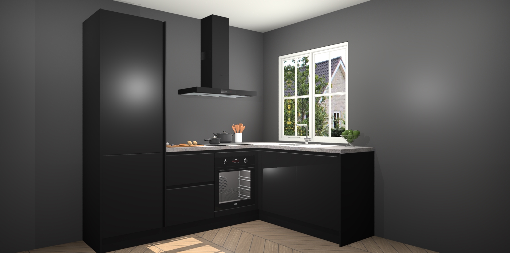 De Zwarte greeploze keuken Linz is de perfecte keuze voor uw nieuwe moderne en tijdloze keuken. Ga voor moderne en tijdloze elegantie in uw keuken. De prachtige hoekkeuken biedt een verfrissende kijk op de manier waarop we ons vertrouwde keukenontwerp kunnen aanpassen in een nieuwe stijl. Één blik om alles te zien: zo mooi dat het bijna magisch lijkt.