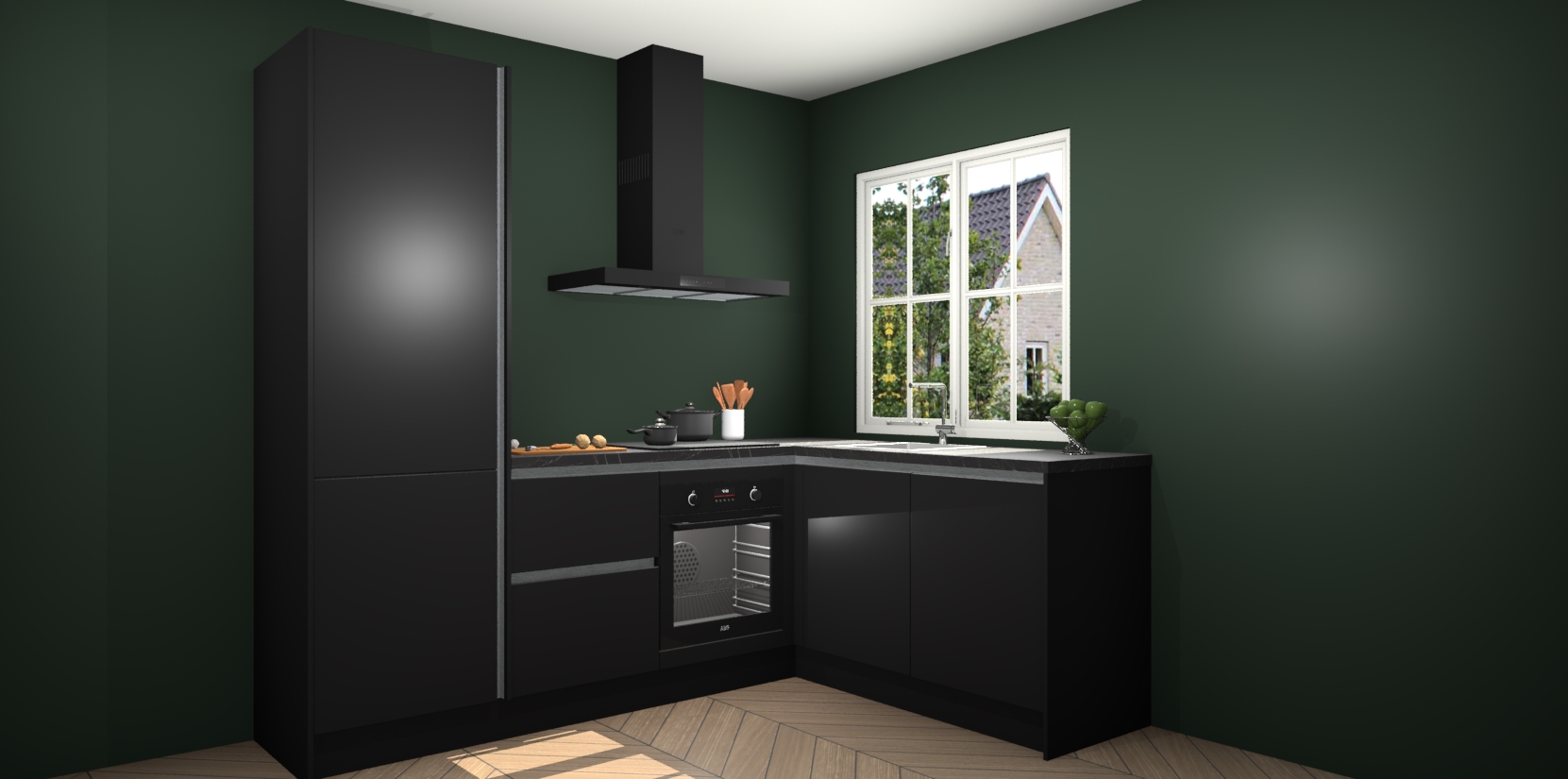 De Zwarte greeploze keuken Linz is de perfecte keuze voor uw nieuwe moderne en tijdloze keuken. Ga voor moderne en tijdloze elegantie in uw keuken. De prachtige hoekkeuken biedt een verfrissende kijk op de manier waarop we ons vertrouwde keukenontwerp kunnen aanpassen in een nieuwe stijl. Één blik om alles te zien: zo mooi dat het bijna magisch lijkt.