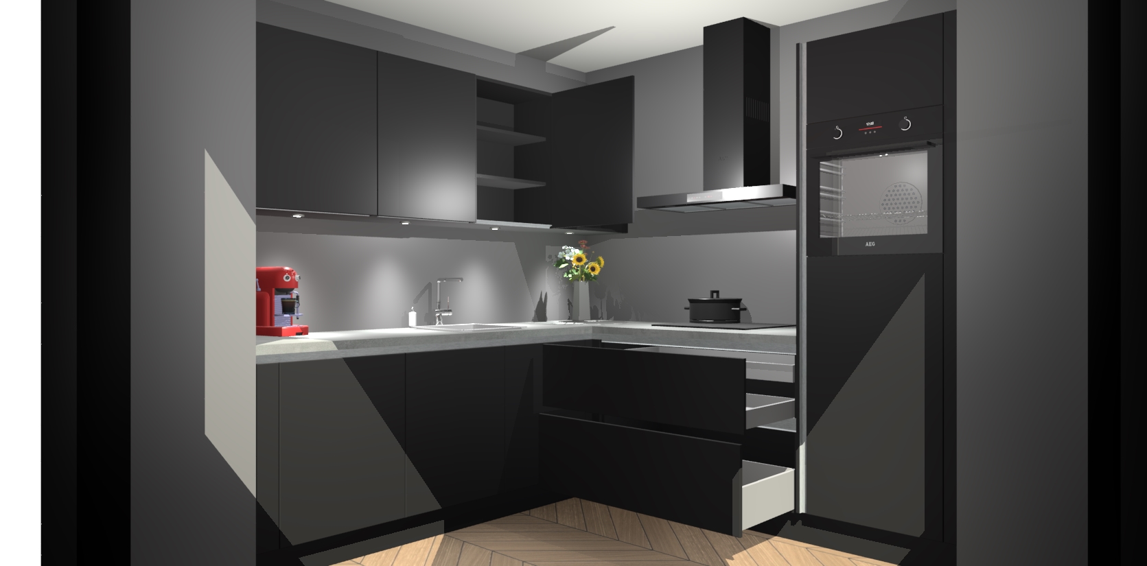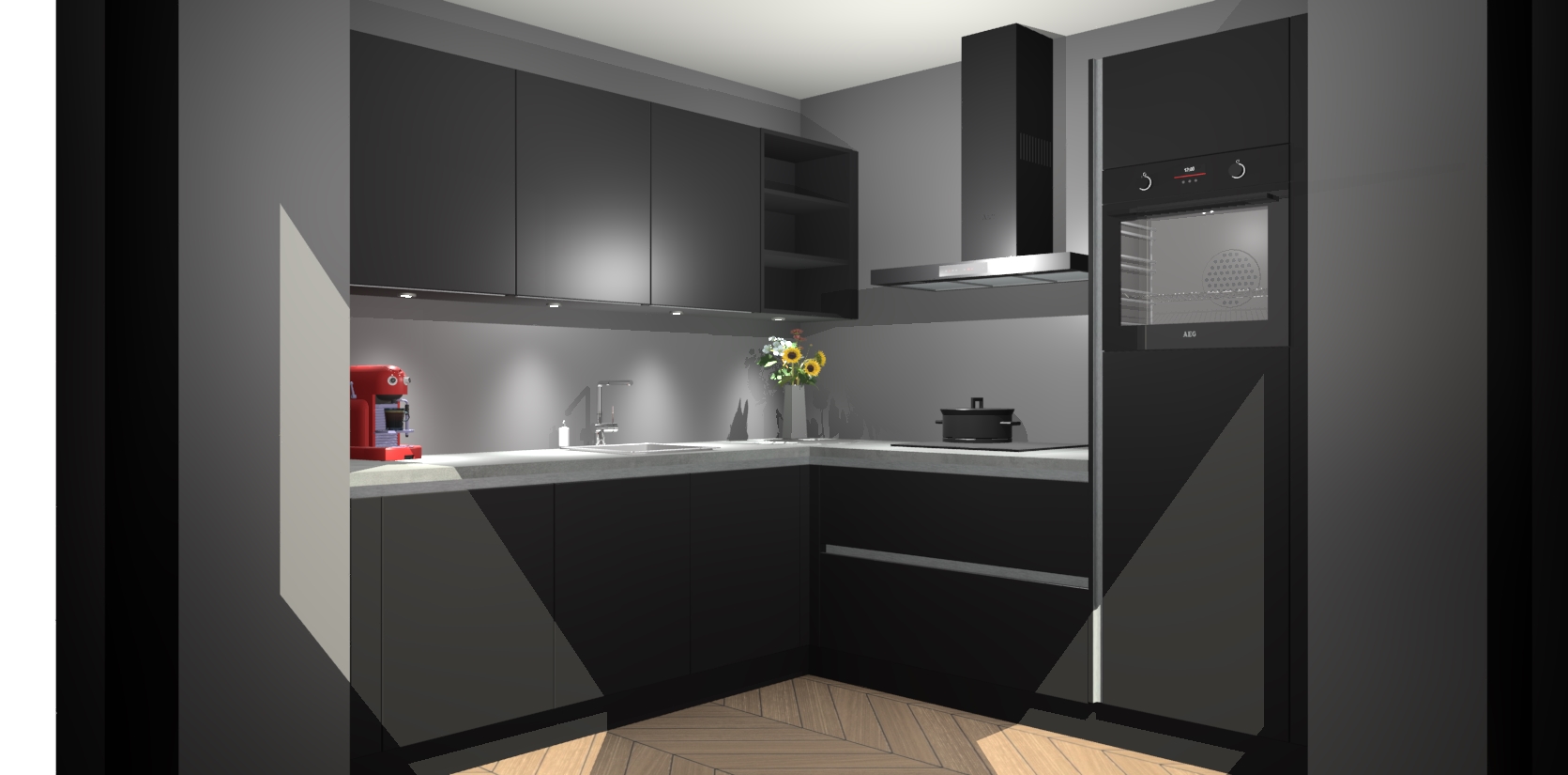 Met een modern, tijdloos design en ruime opslagruimte, zult u zich in no-time thuis voelen in uw nieuwe keuken. Uw leven wordt eenvoudiger met de soft-close deuren die voor het ultieme stille comfort zorgen - geen geluid dat u stoort terwijl u kookt. Ook is de keuken voorzien van 5 ingebouwde apparaten: een oven, inductie kookplaat, afzuigkap, vaatwasser en koelkast. Deze kunnen gemakkelijk na bestelling worden bijgewerkt naar AEG - waardoor uw luxe ervaring compleet is.